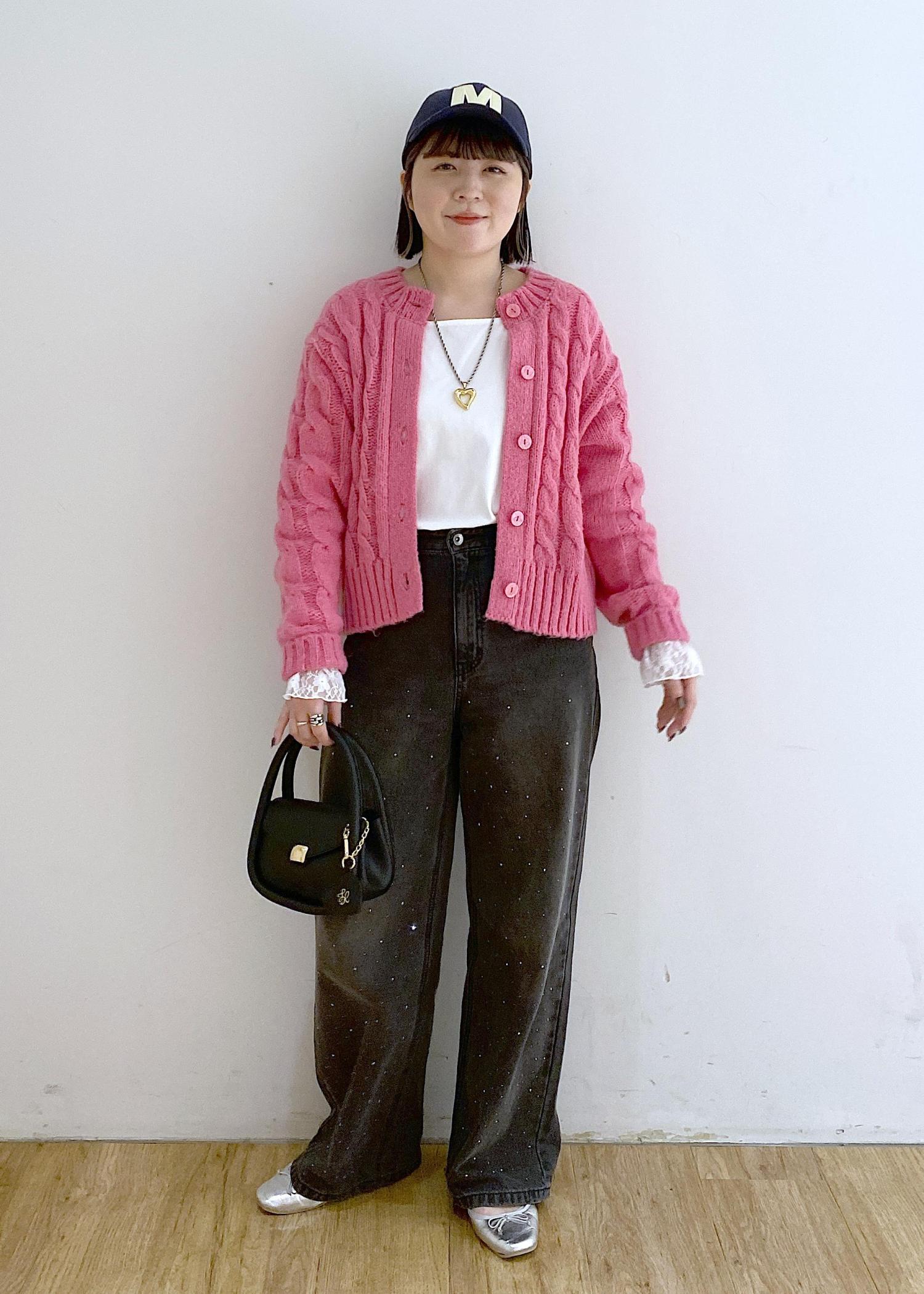 骨格ナチュラルが得意なシルエットを意識したコーディネートです。ウエストをマークしなくてもプリーツスカートで縦のラインをみせてスッキリした印象に◎