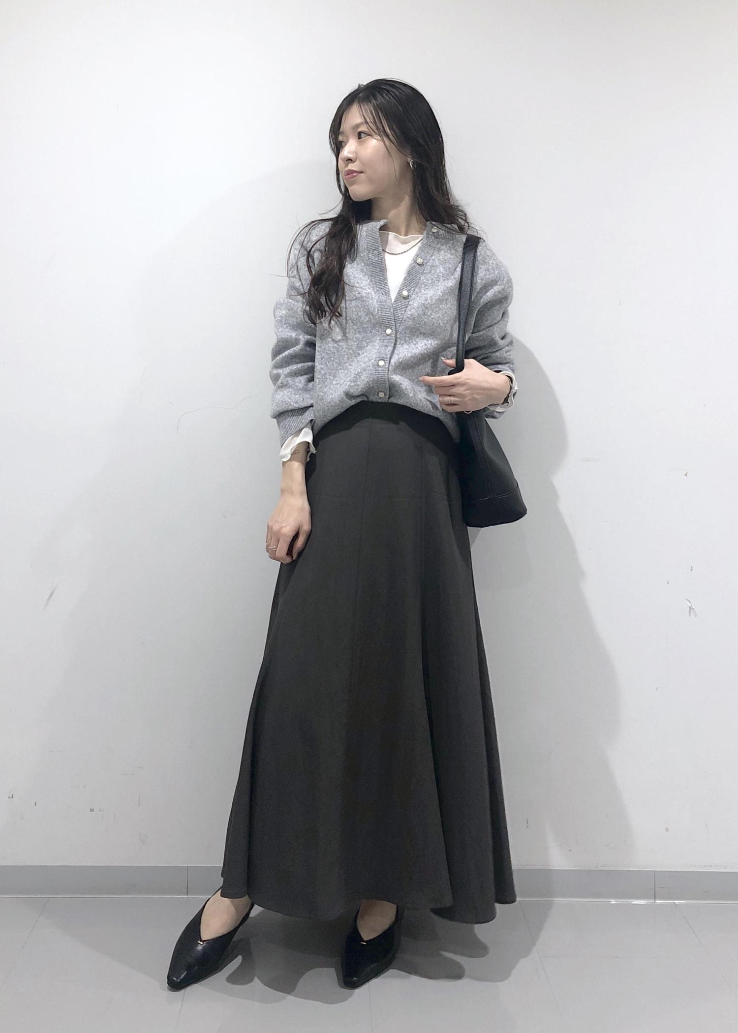 淡いブルーのワイドパンツを主役に、ブラウスは甘くなりすぎない黒を選び、パンツのブルーを引き立たせるため小物は黒系でまとめました!