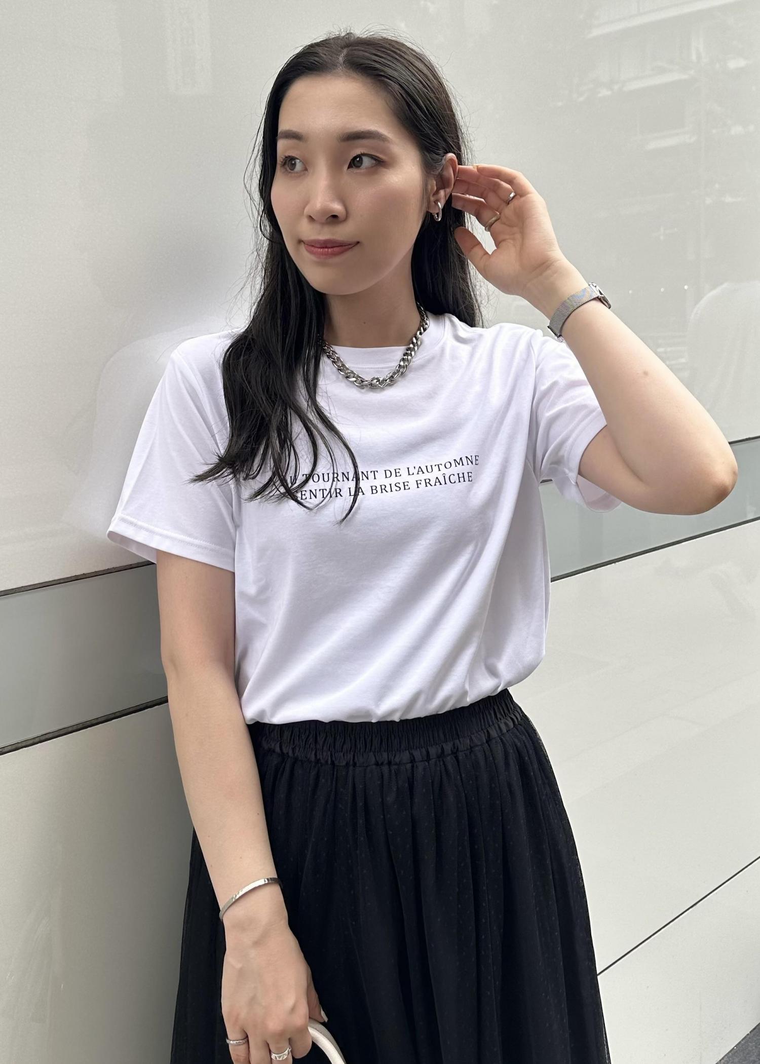 ベーシックな白のロゴTシャツを使ったコーディネート。