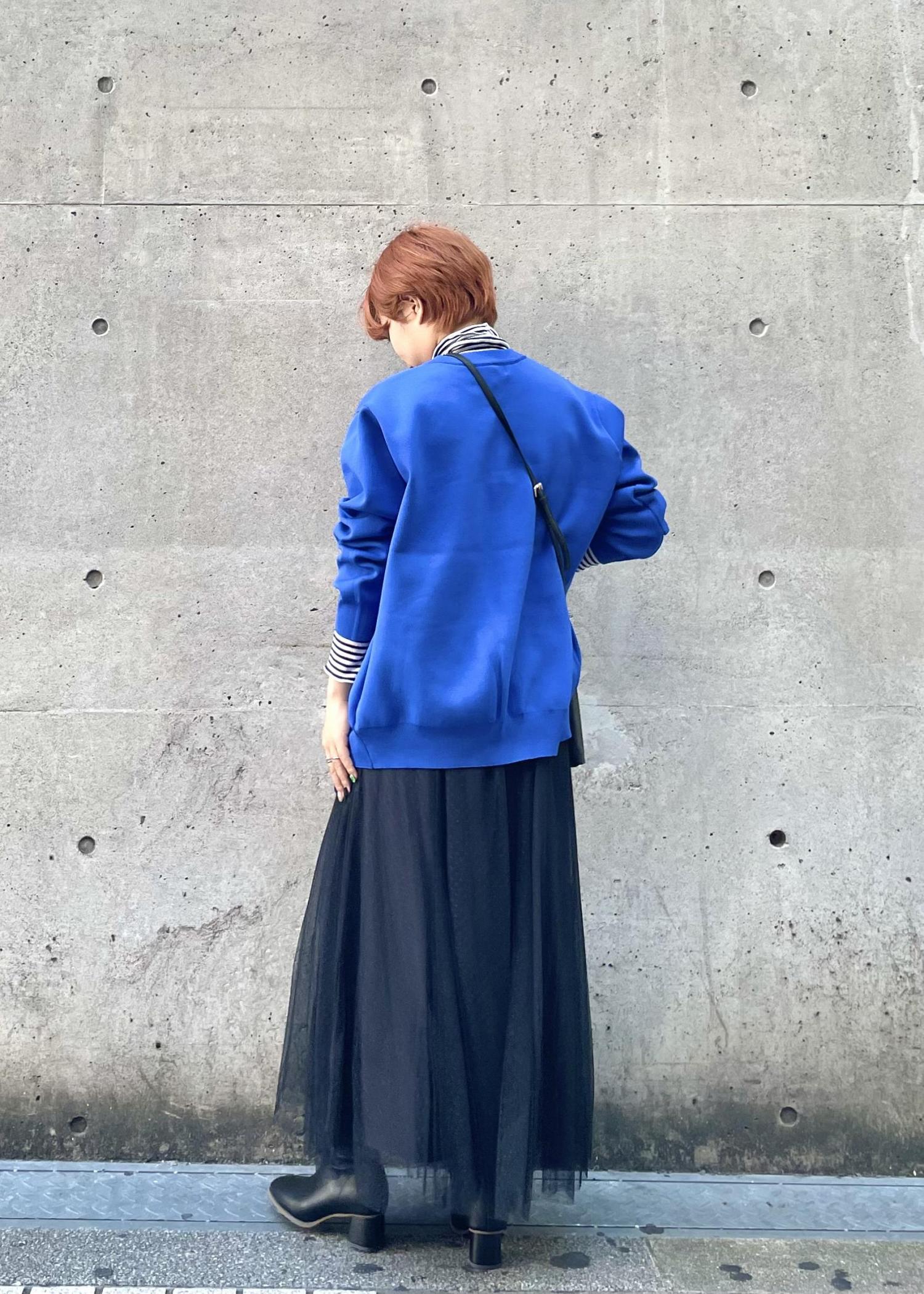 今回は鮮やかなブルーの羽織を主役にしたコーディネートです。