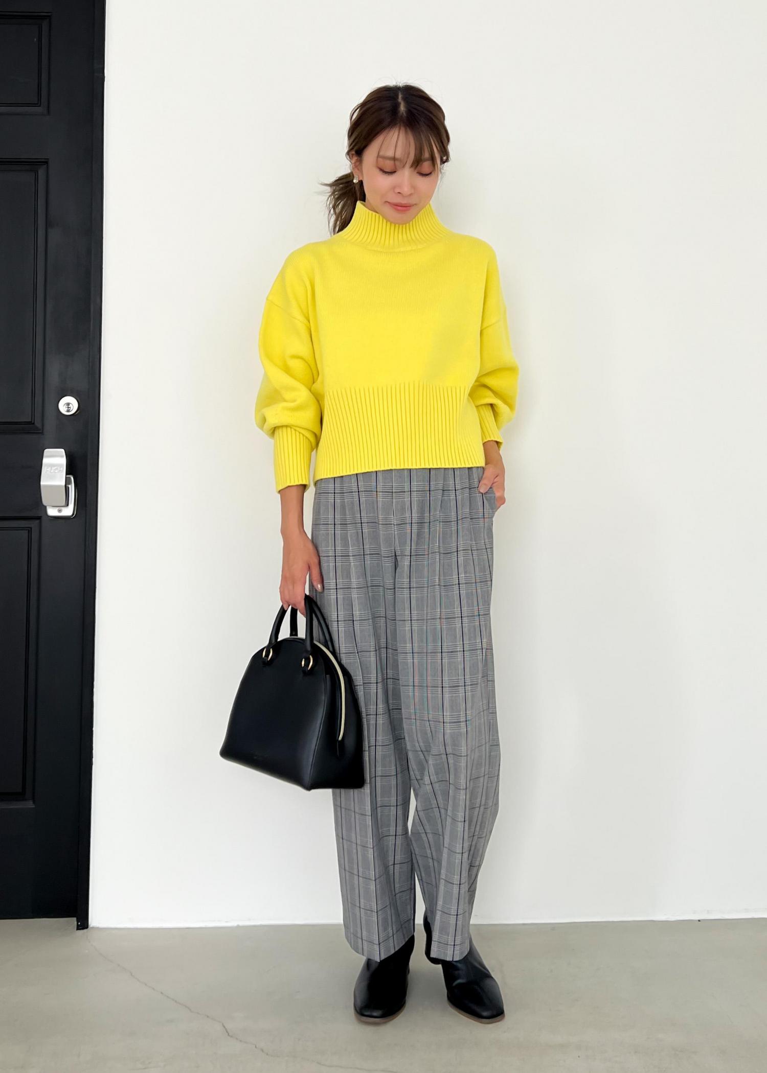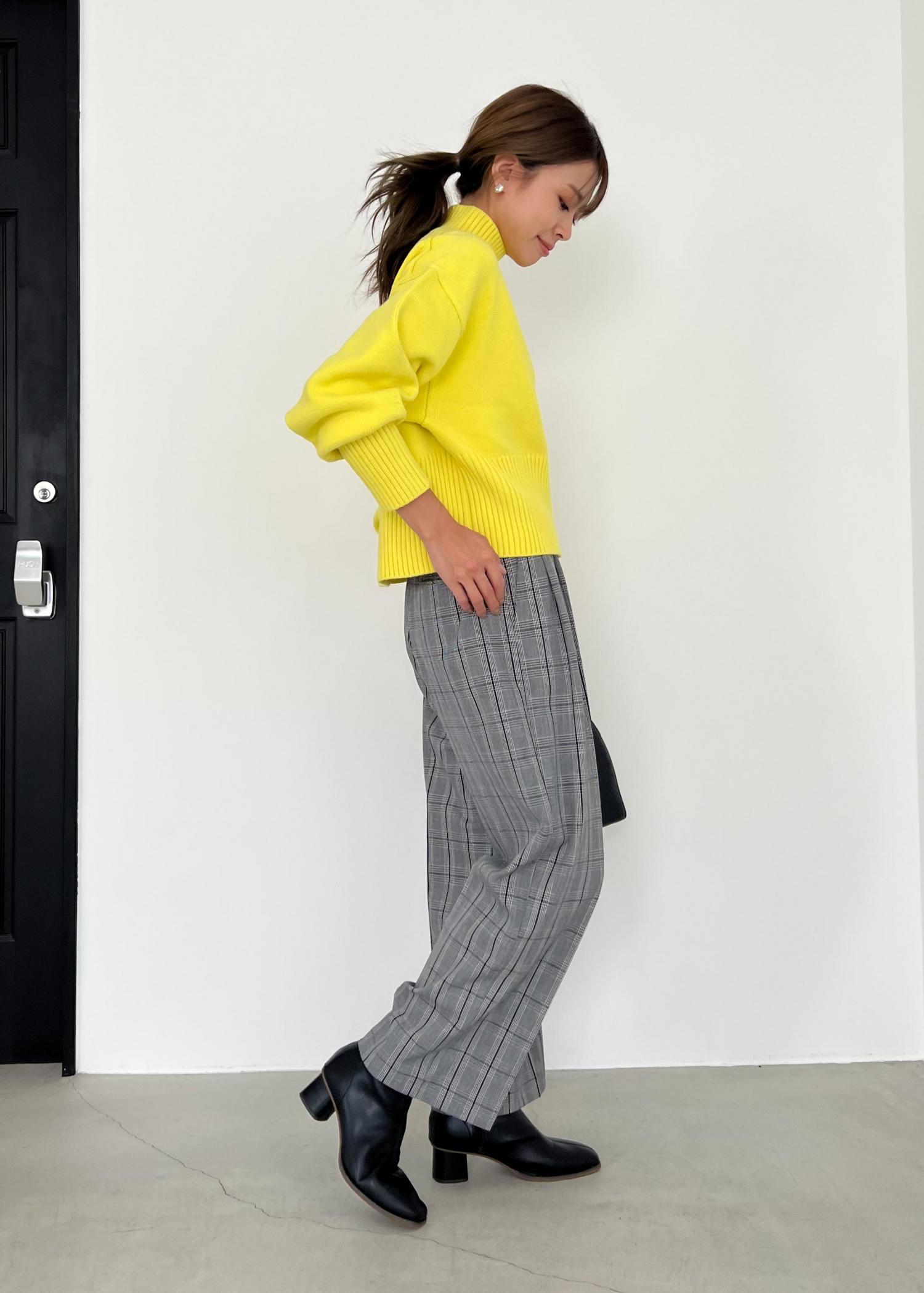 イエロー×チェックの秋冬コーデ