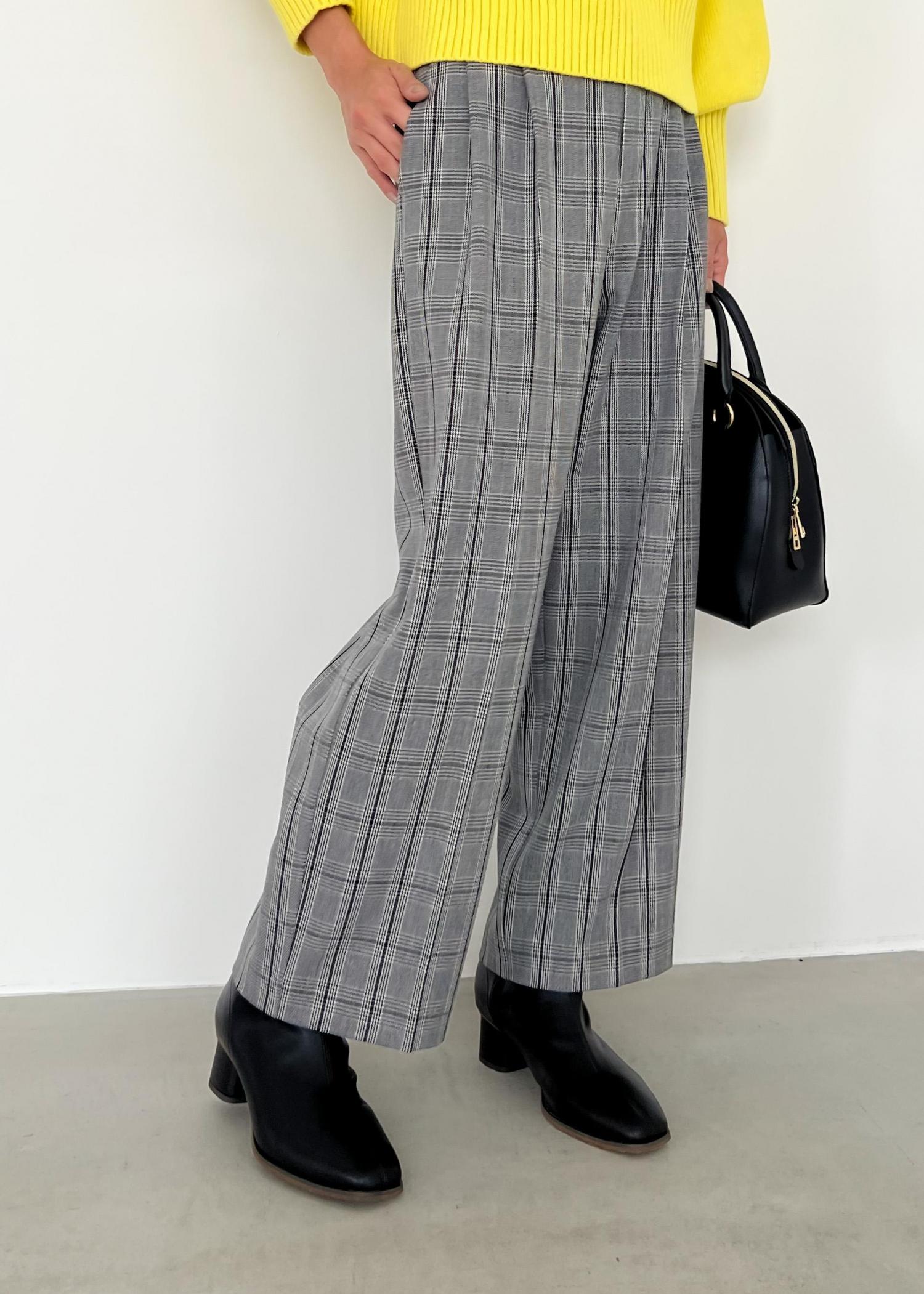チェック柄のワイドパンツを合わせて秋冬コーデにしました。
