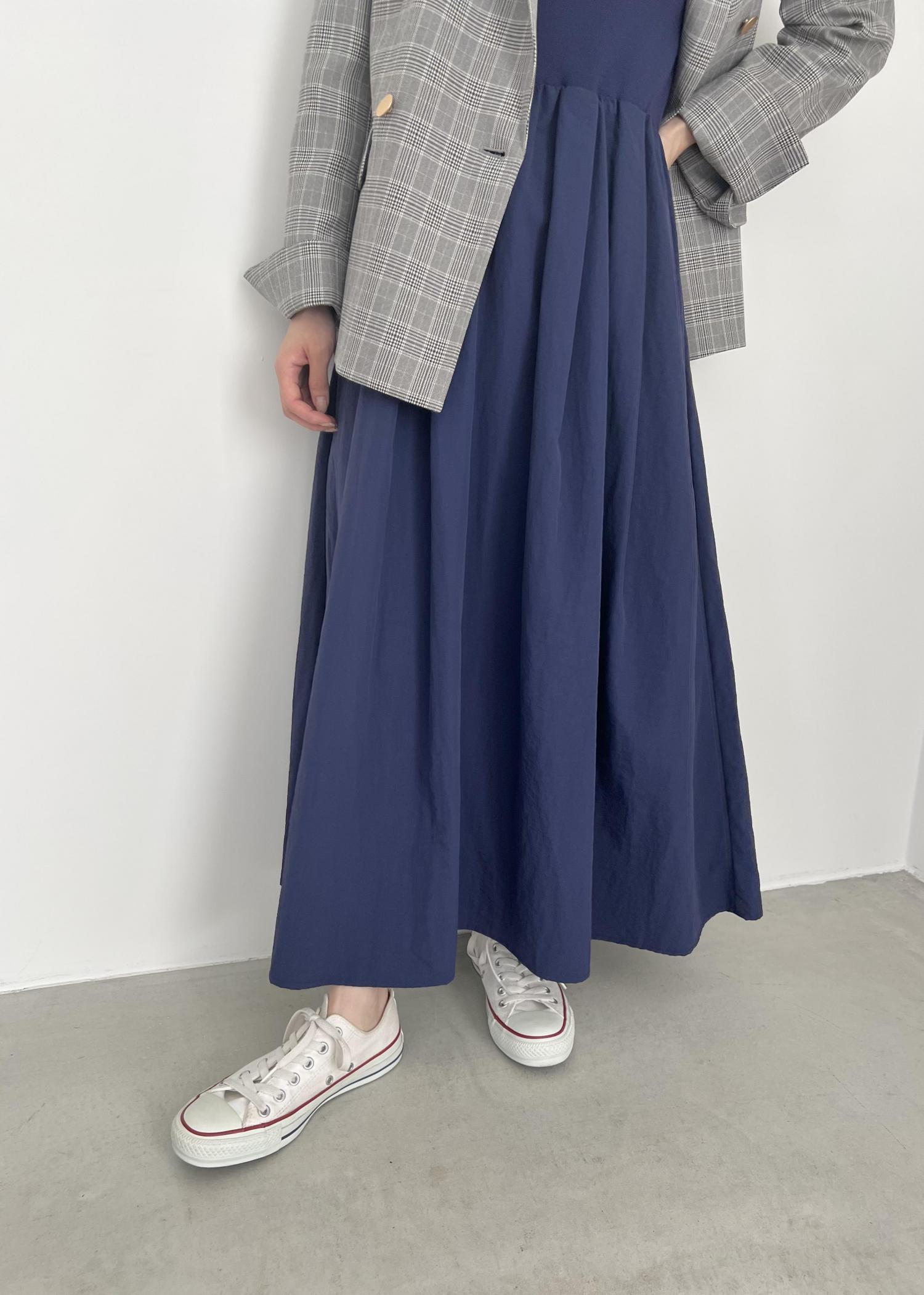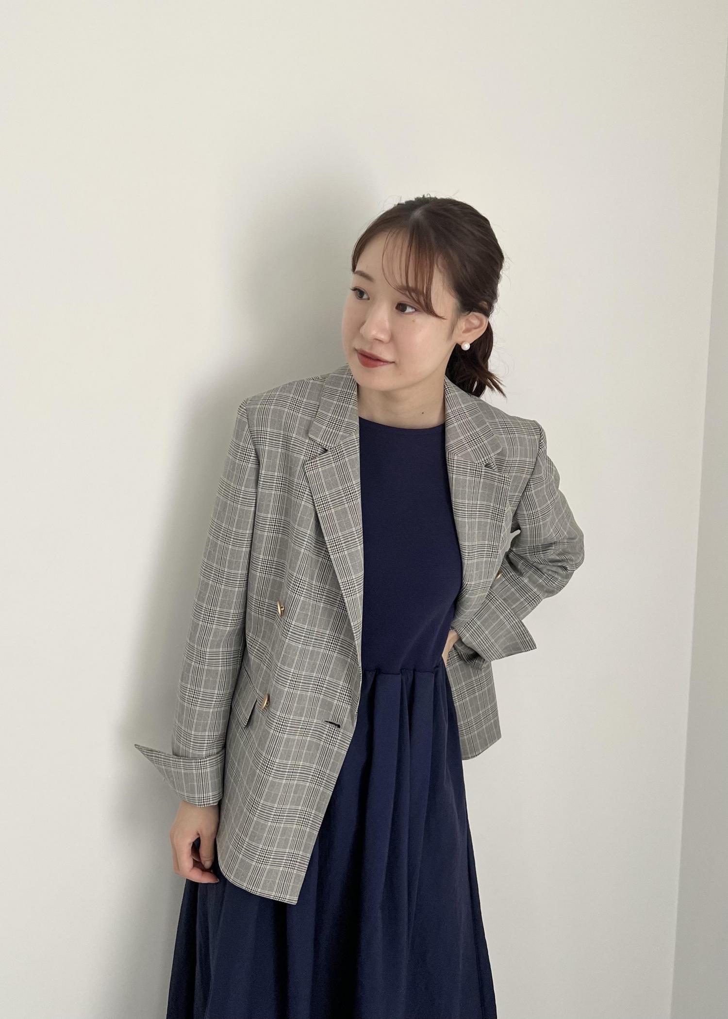 ワンピにスニーカーのラフなコーデに、ジャケットを合わせました。 カラーをまとめて、統一感を出したのがポイントです!
