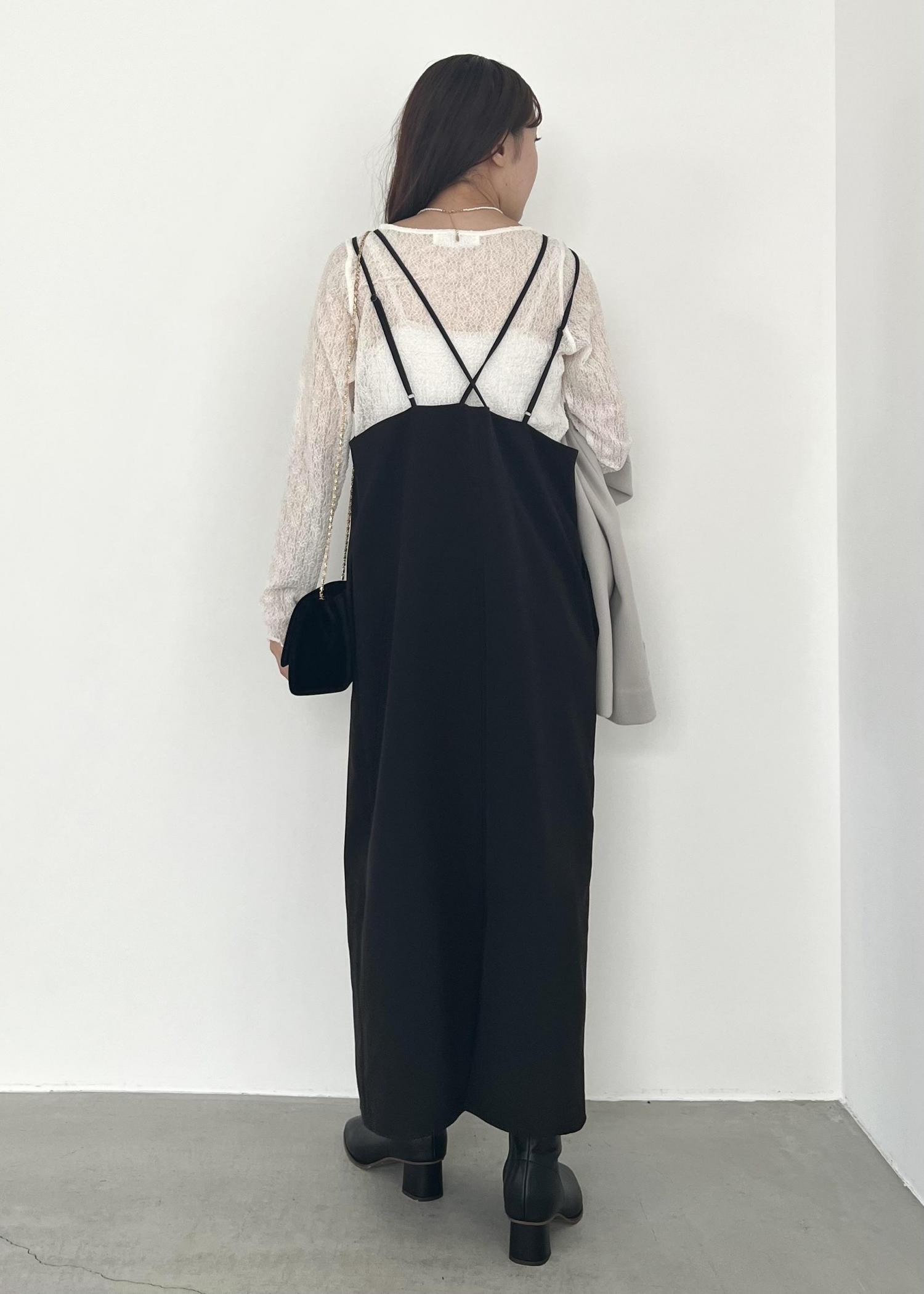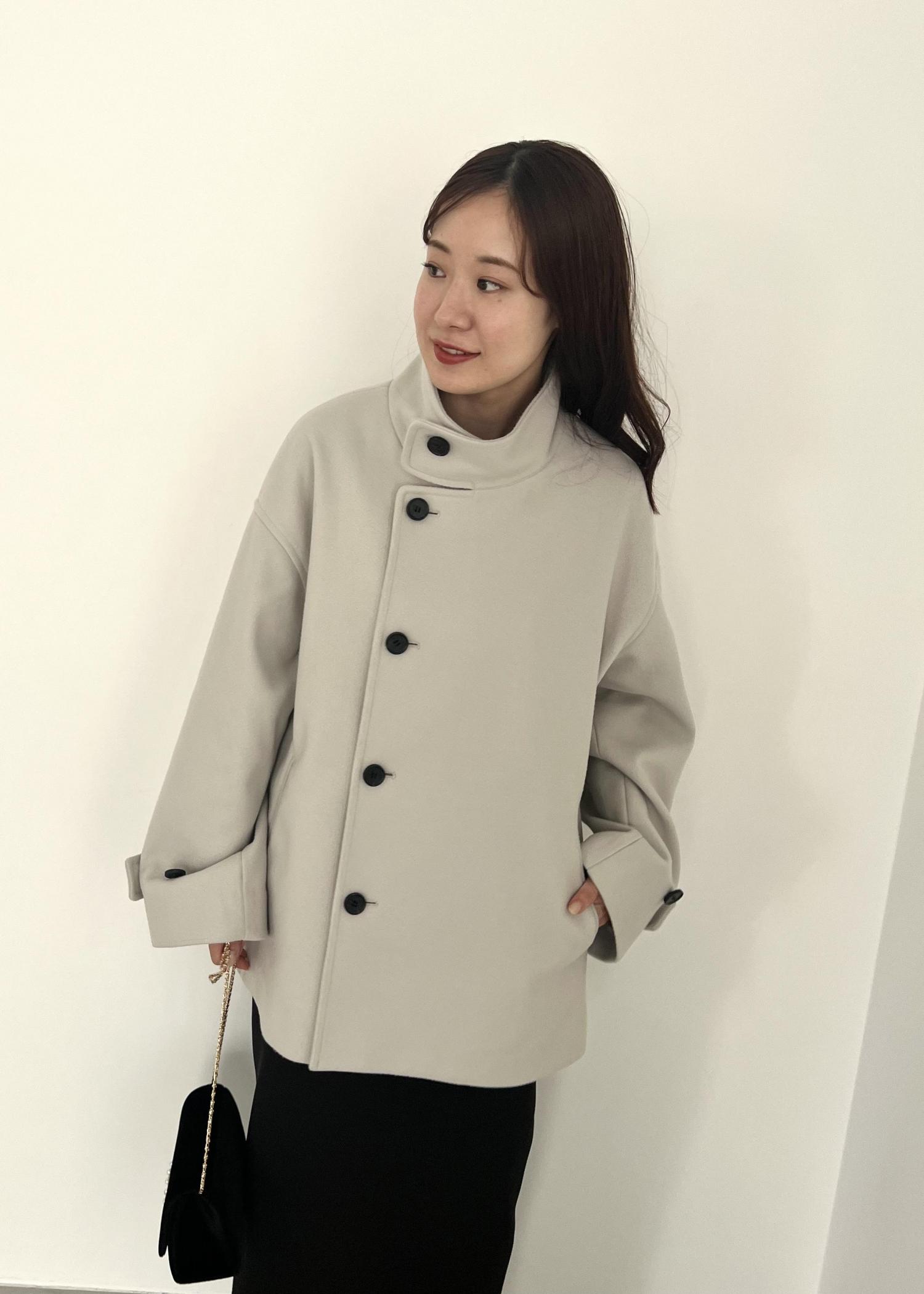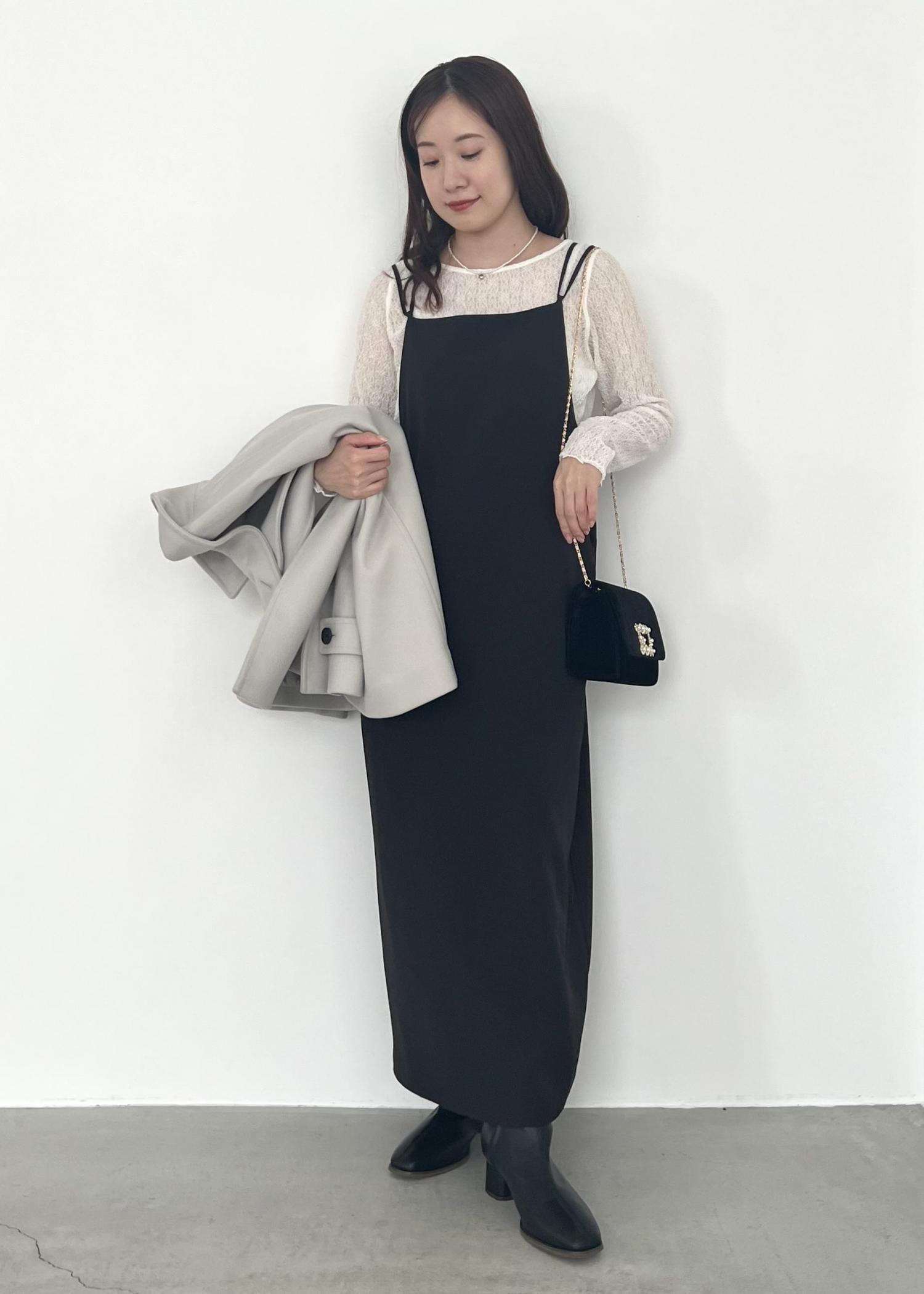 キャミワンピできれいめカジュアルコーデに。 アウターはスタンドネックにすると、おしゃれな印象になります。