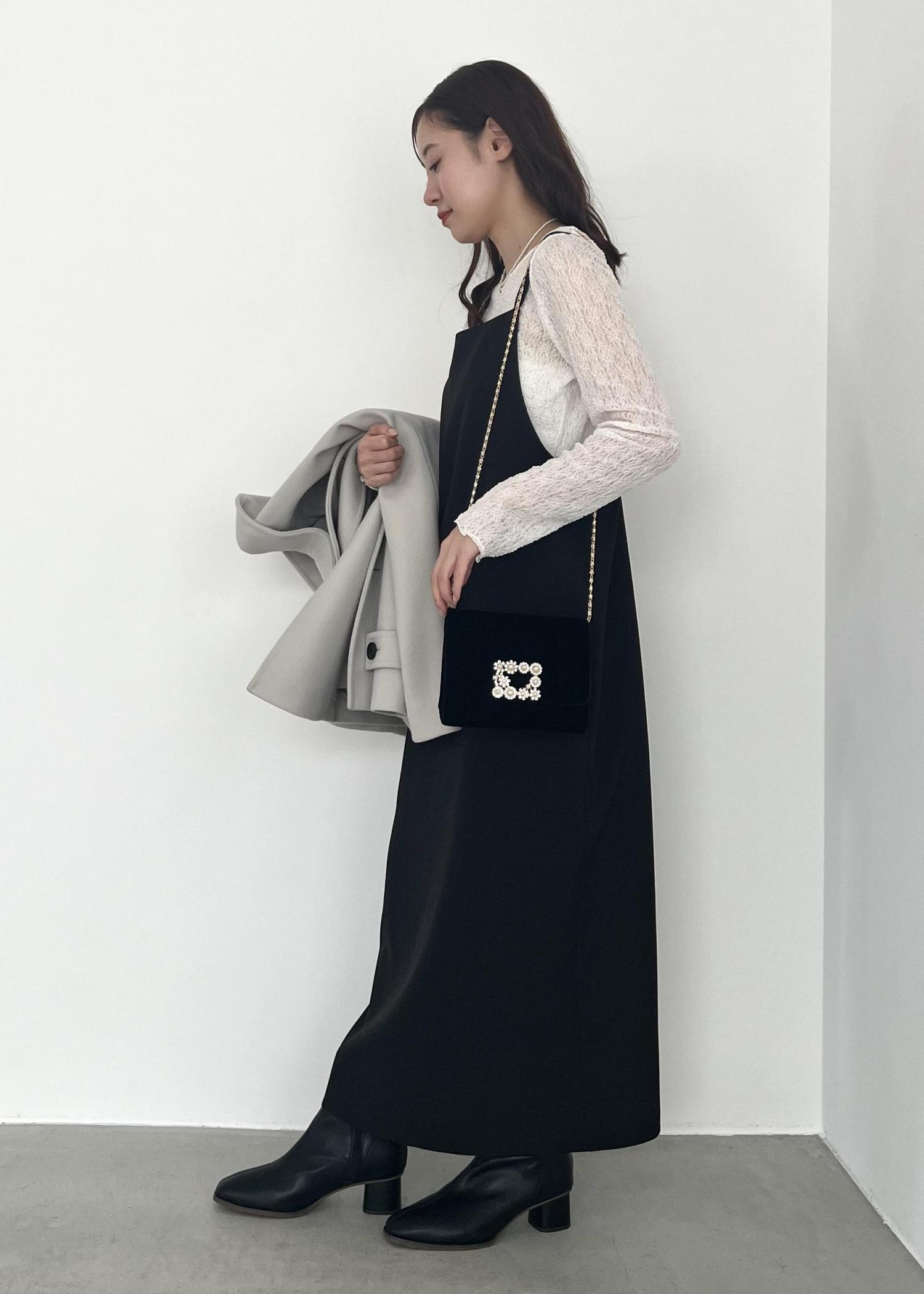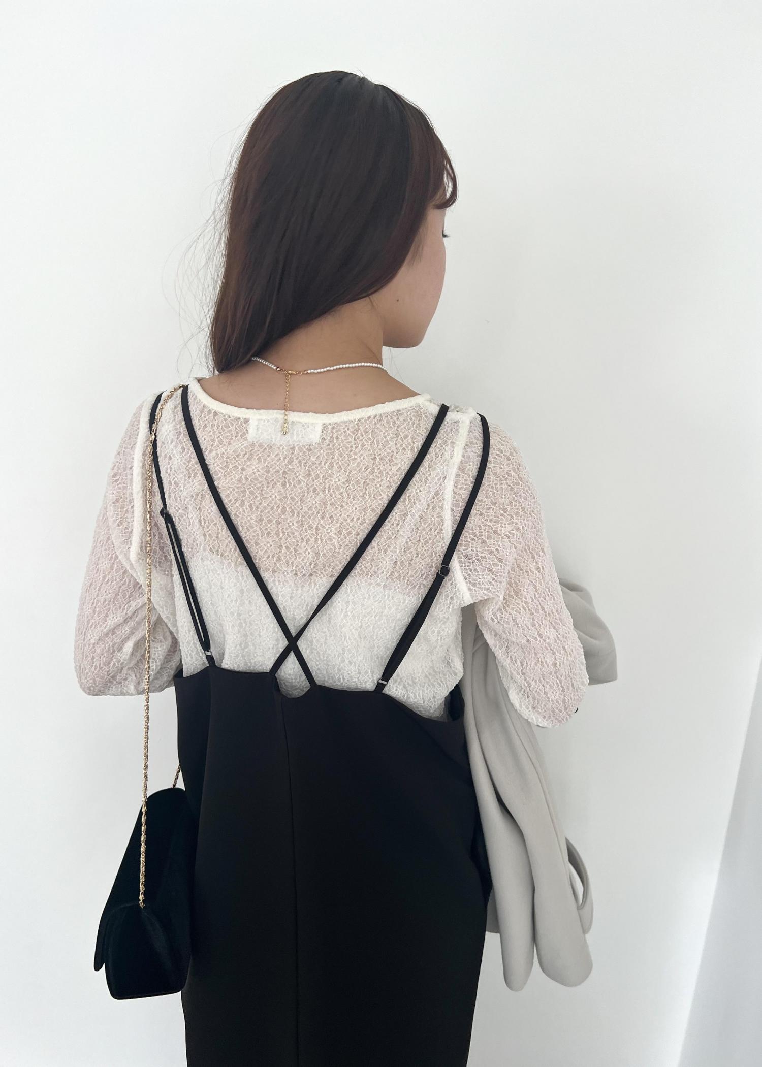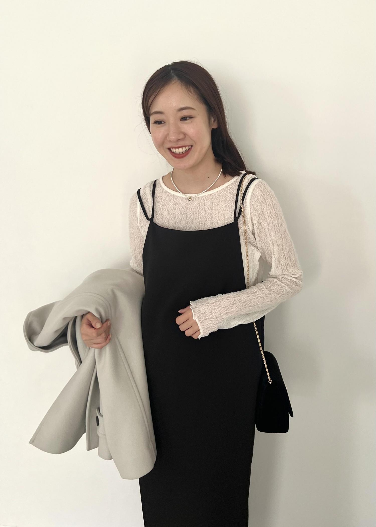 カジュアルなキャミワンピをお呼ばれ風にアレンジ。 ディナーや結婚式の二次会などの、ちょっとしたドレスアップをイメージしました。