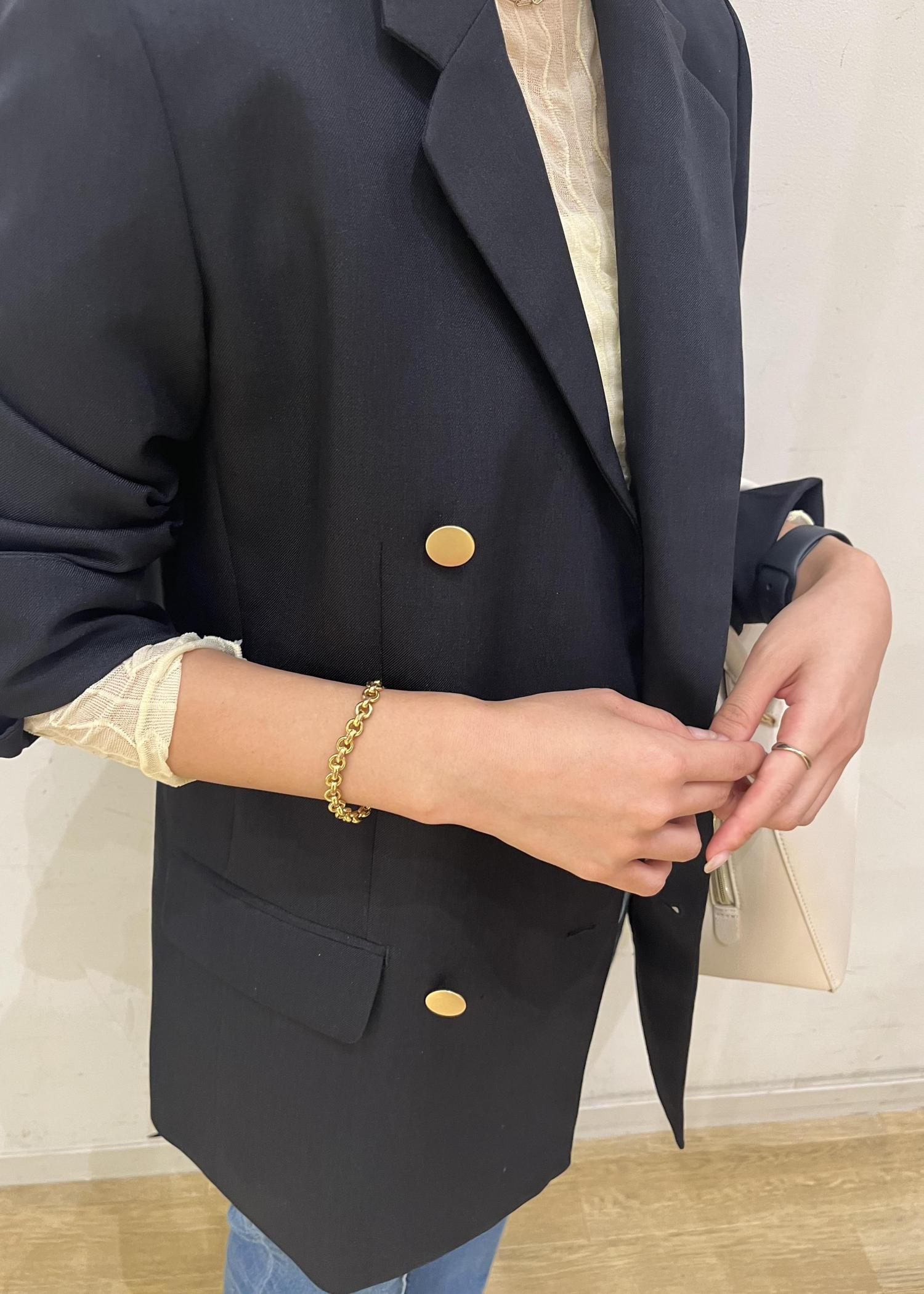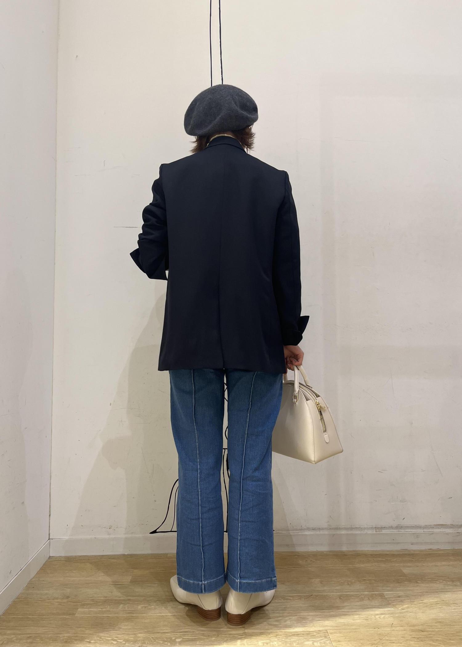 ネイビーのジャケットにデニムを合わせたコーデです!