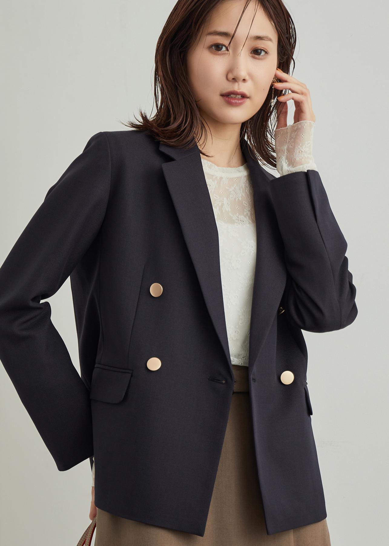ネイビージャケットのオフィスコーデ