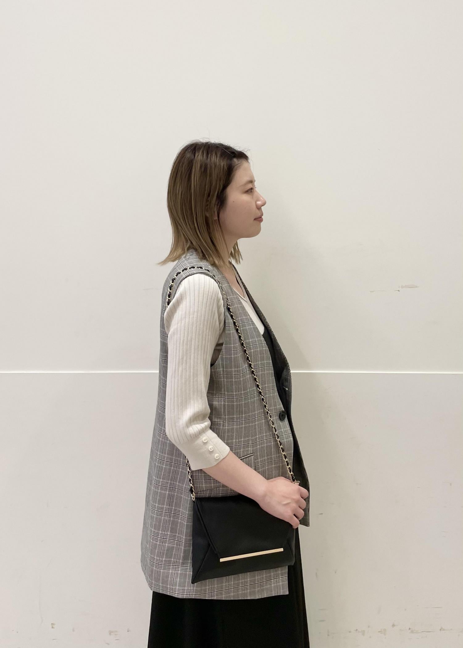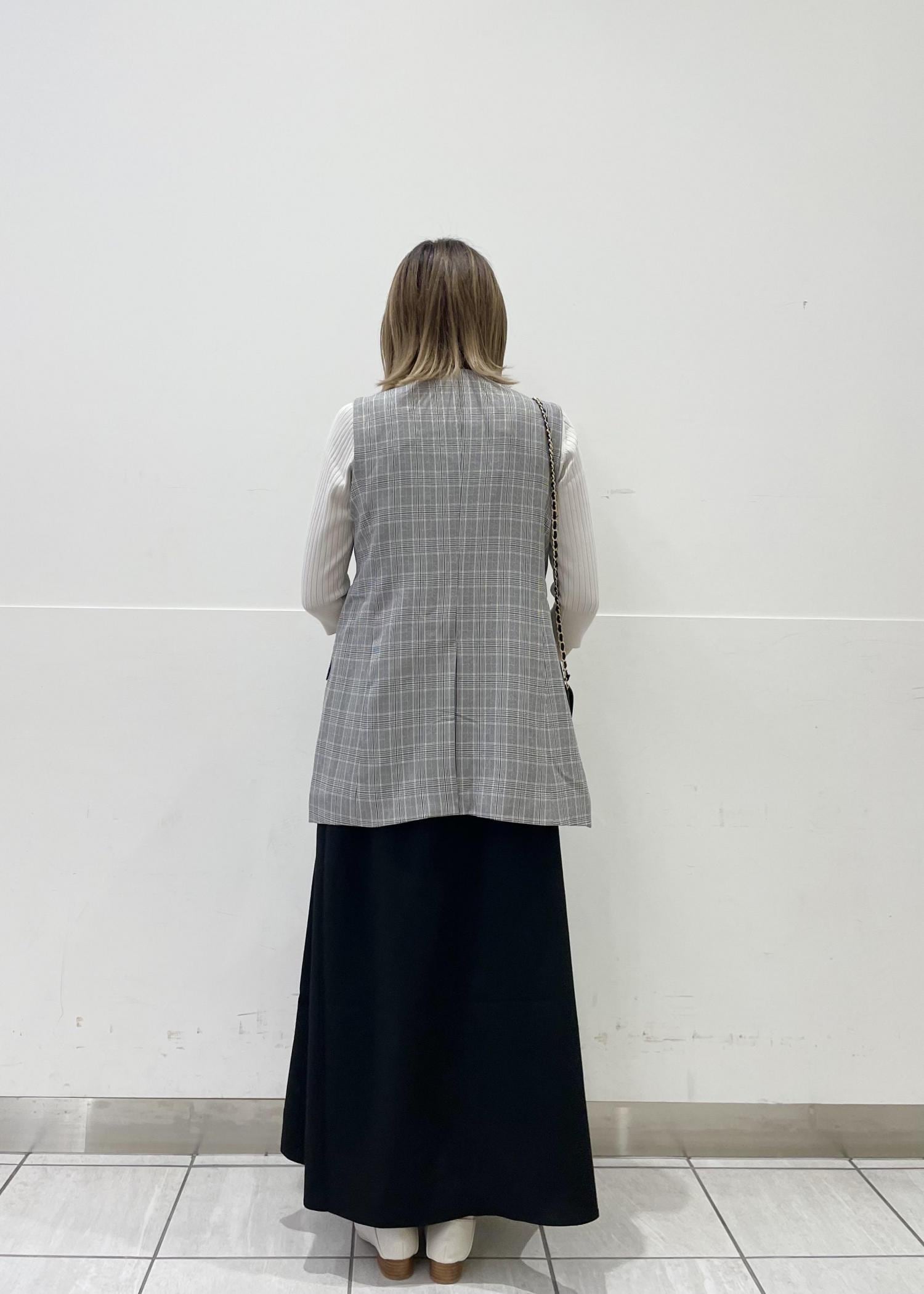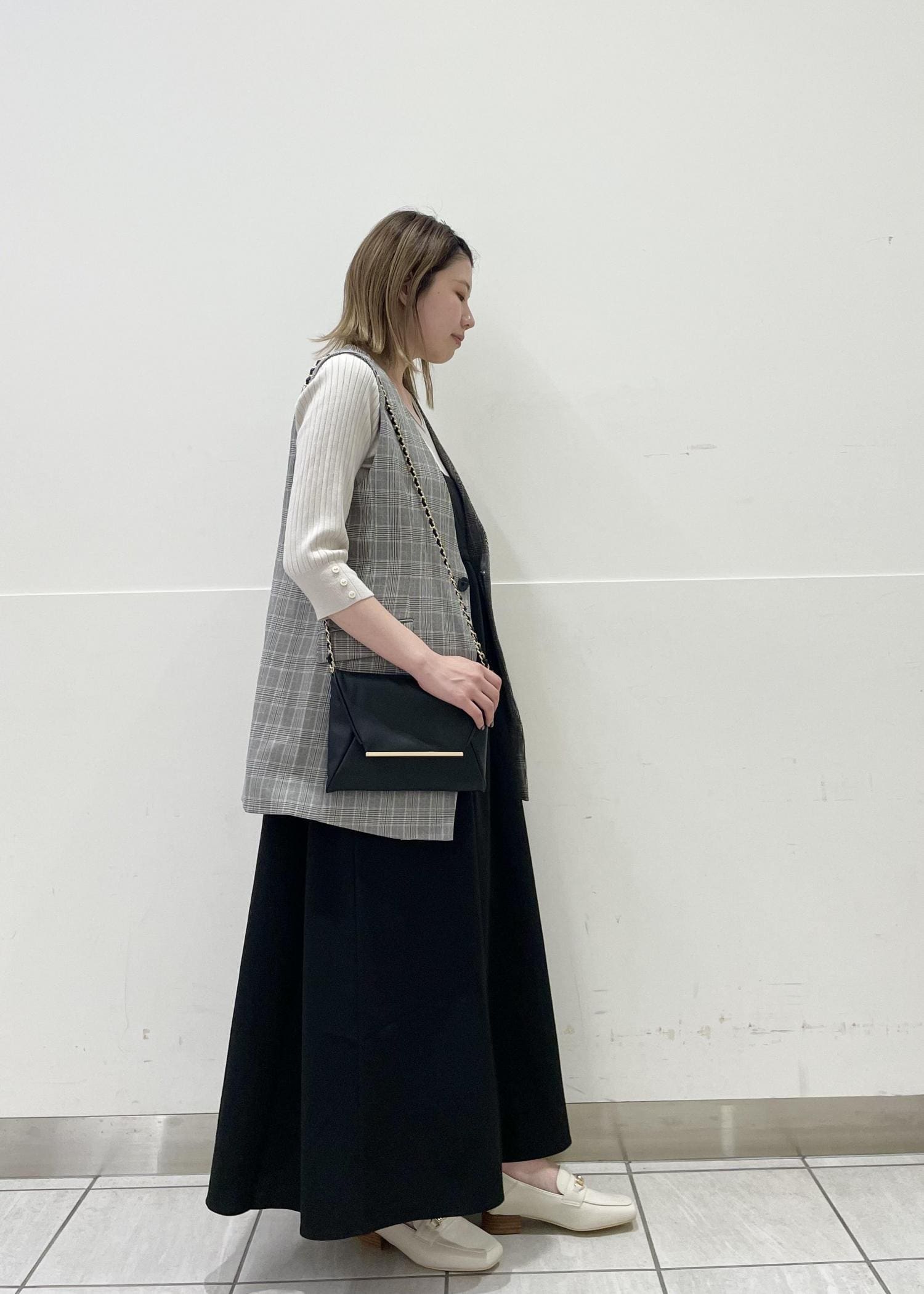 フワッと広がるキャミワンピースとリブニットでメリハリのあるシルエットにジレを合わせてキレイめコーデにしました◎グレーのジレは春も使える色みで、デニムとの相性もいいのでお仕事〜普段着とデイリーユースでおすすめです◎
