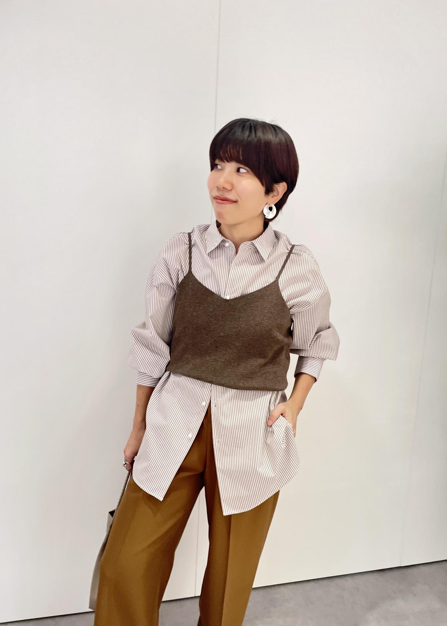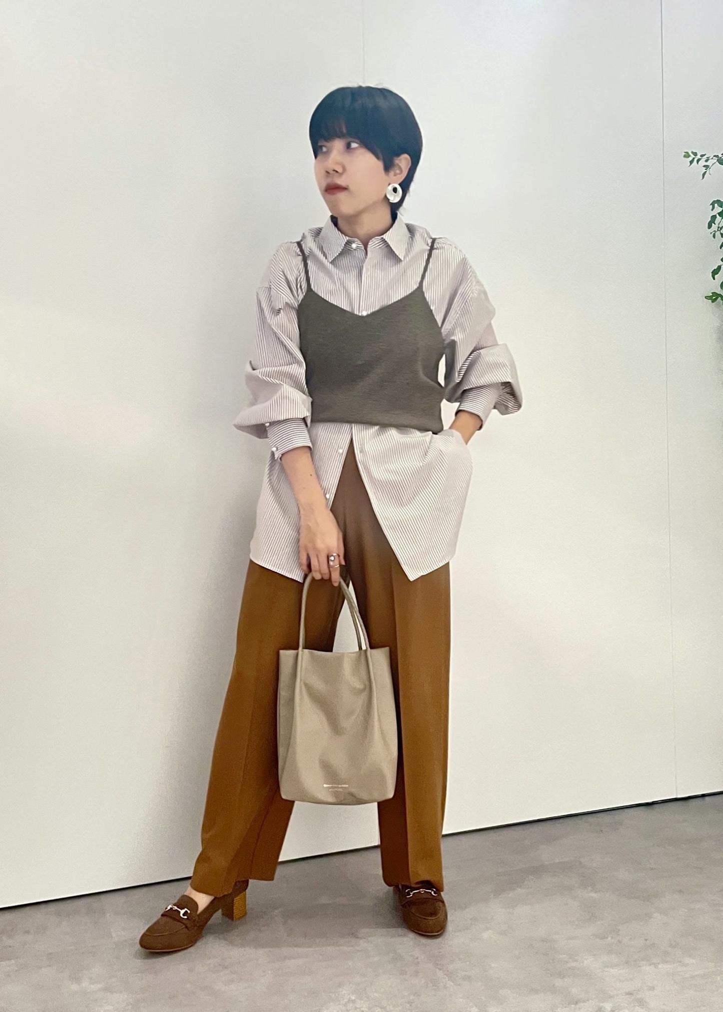 ベージュやキャメルカラーでまとめて秋を意識しました。