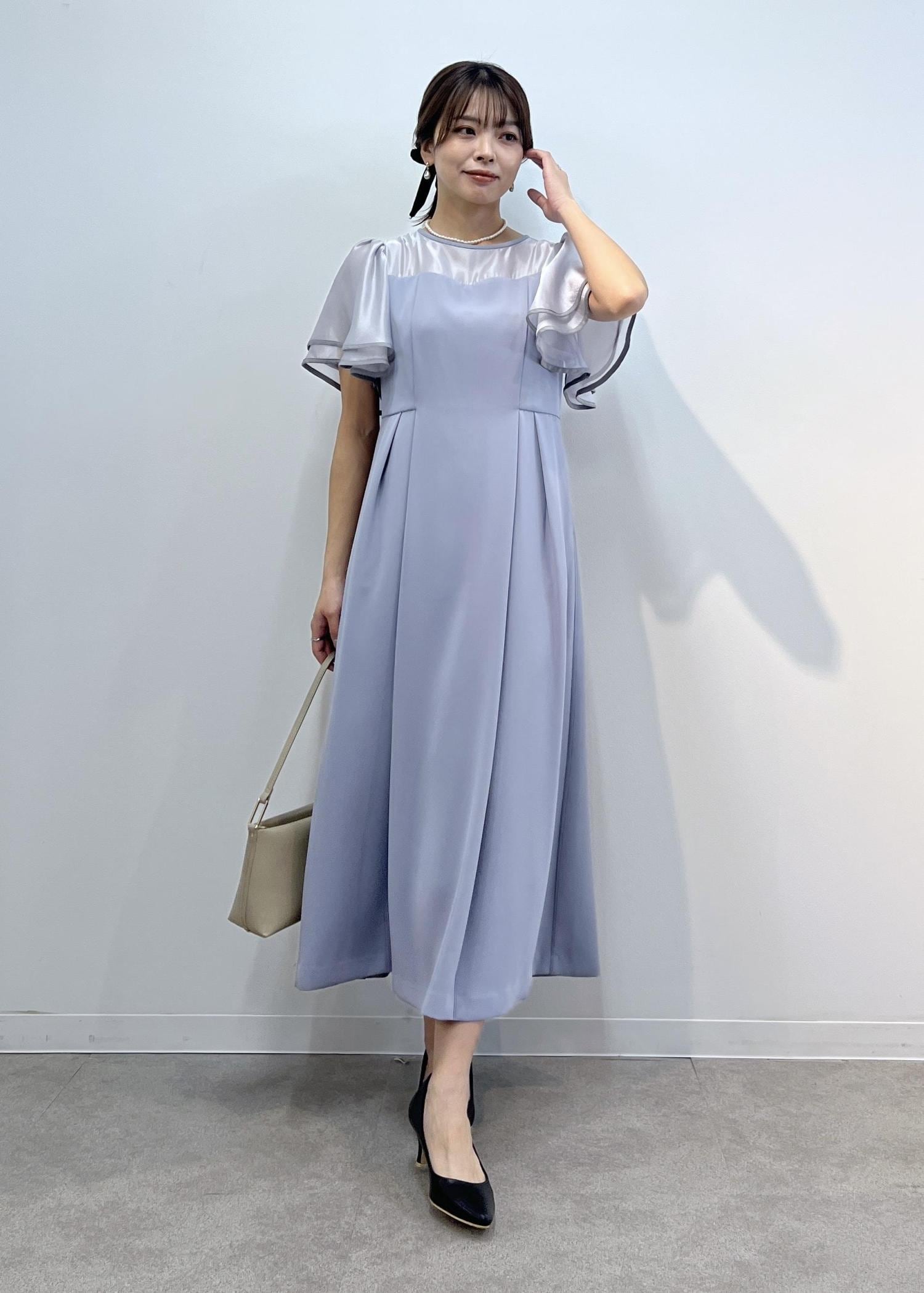 ワンピースにレイヤードして、スタイルアップの叶うレイヤードコーデにしました。