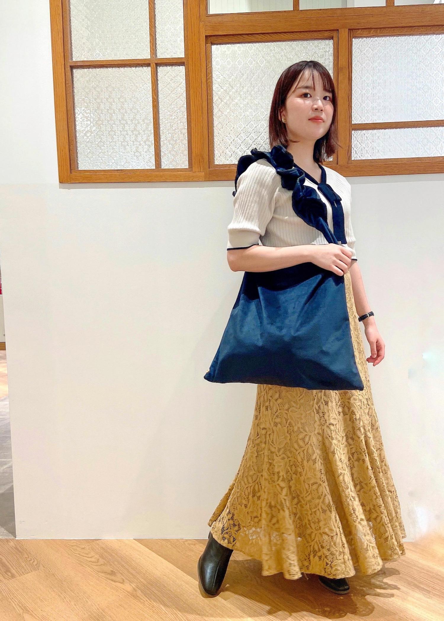 秋らしいレースマーメイドスカートを合わせた晩夏コーデです! マーメイドシルエットが綺麗で低身長の方にもおすすめなスカートです。