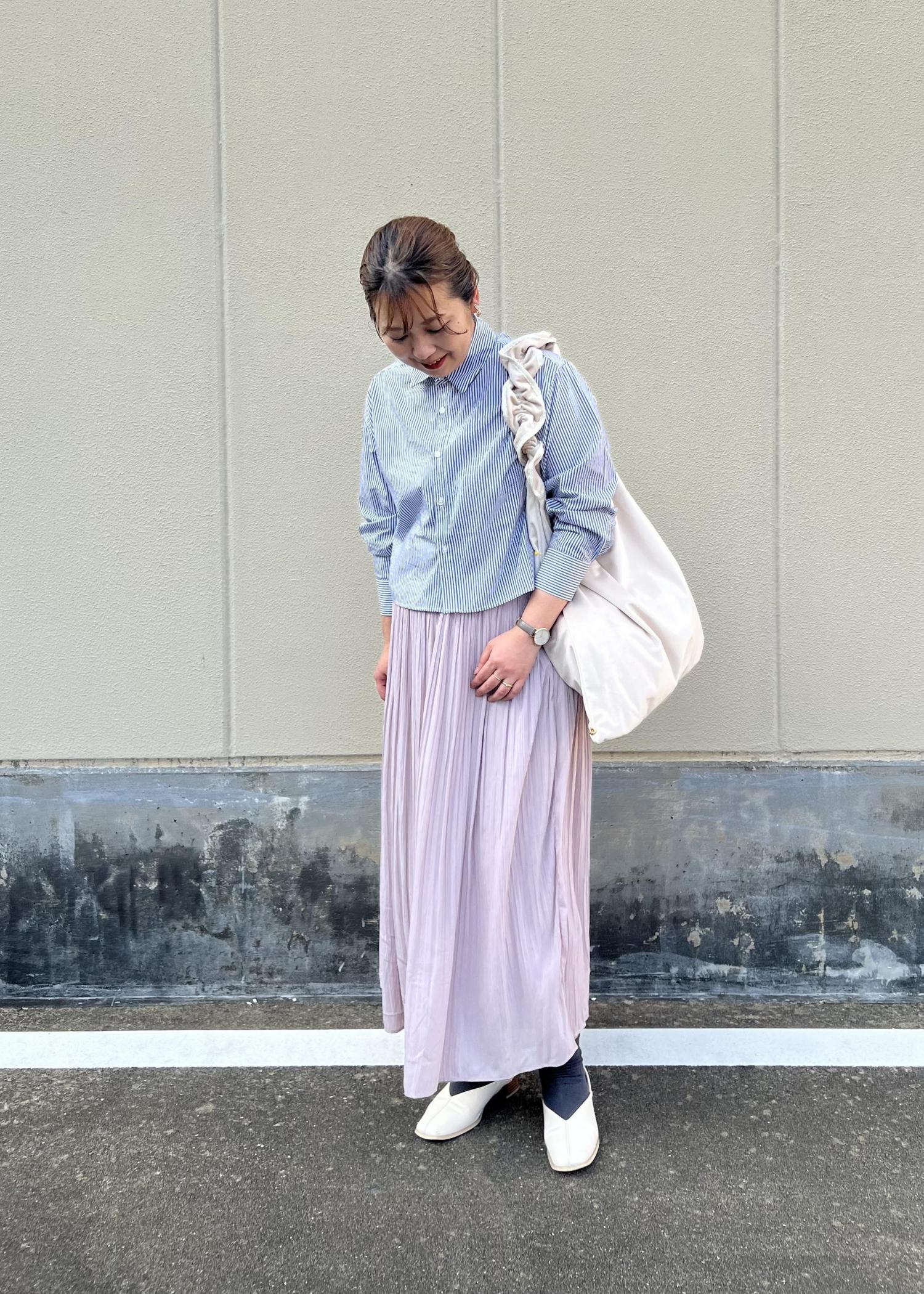 こちらのスカート合わせだと体型カバーも叶えてくれるので短いシャツを合わせても普段隠している場所を出せるので