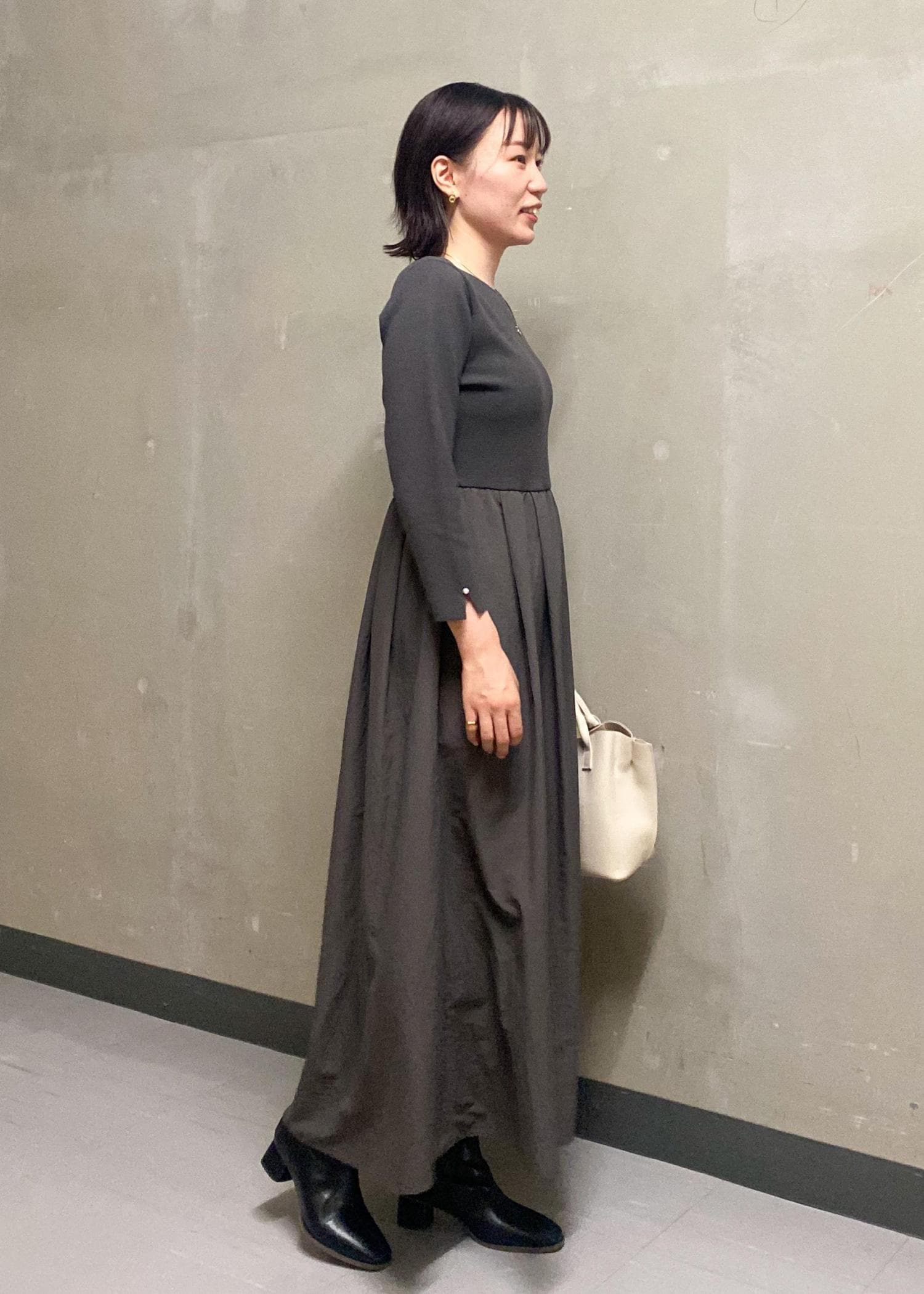 すぐにコーディネートが完成する異素材のワンピースは1着は持っておきたいですよね♪