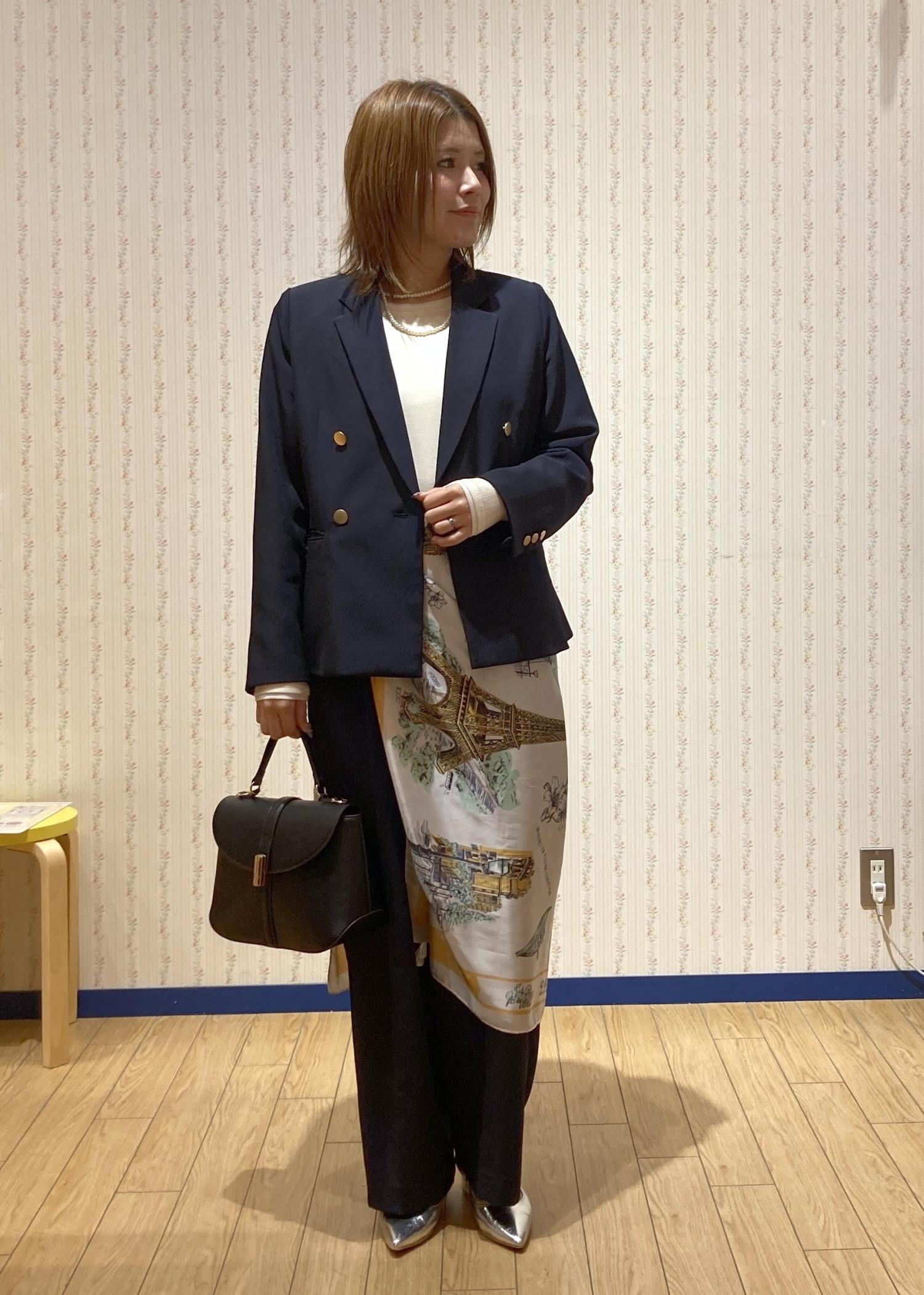 着用しているブラウスはウエストインが苦手な方にもオススメのアイテムです!