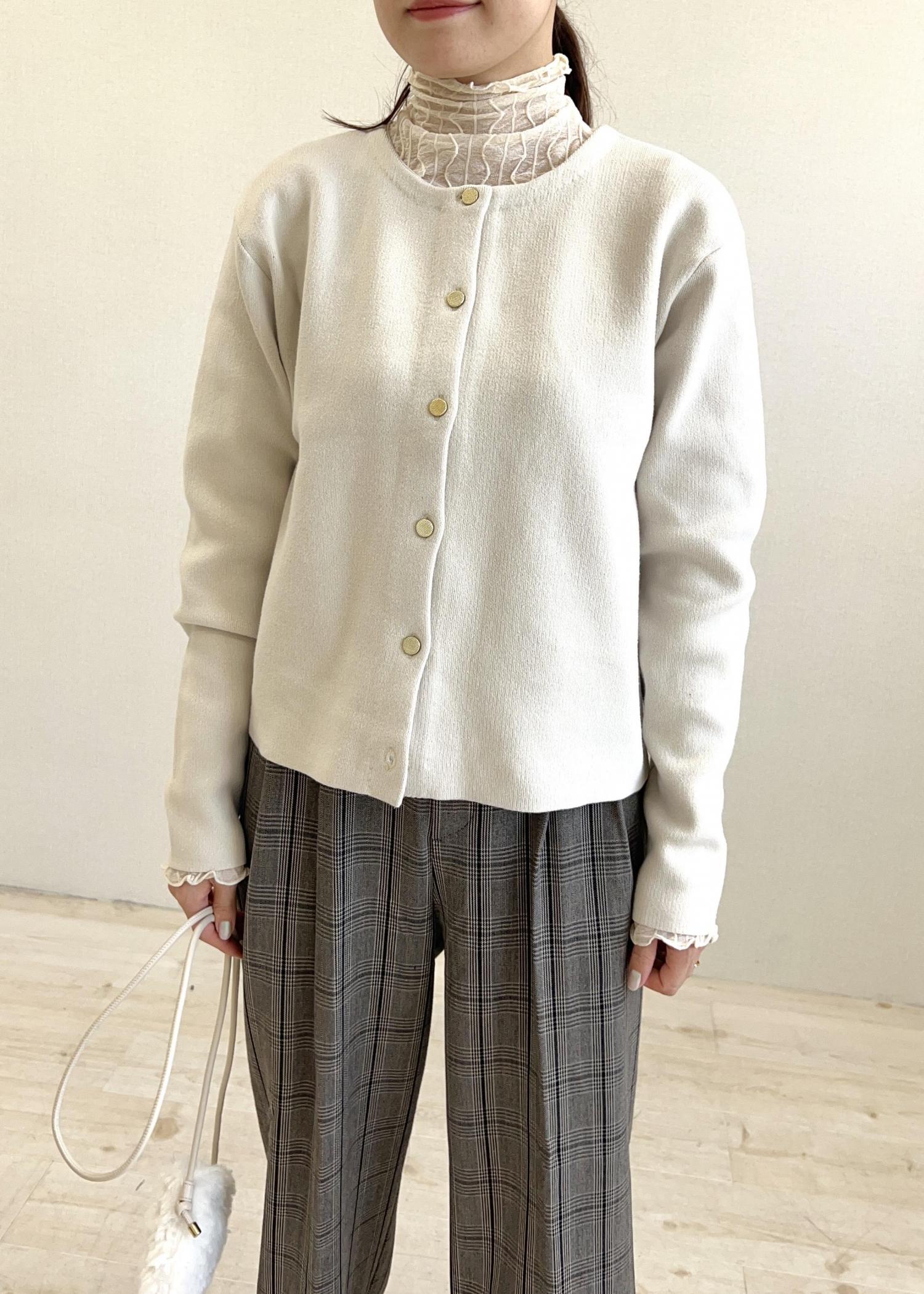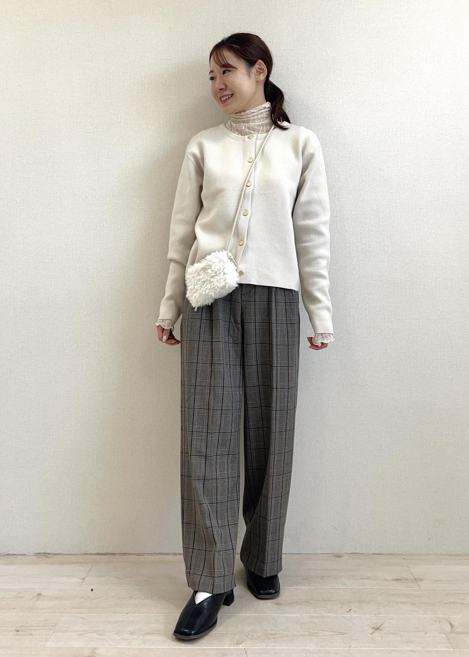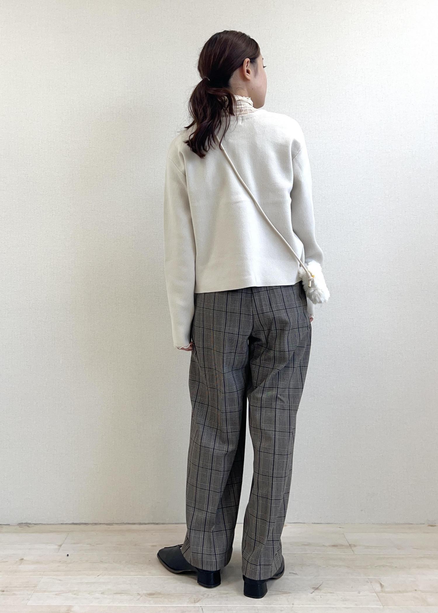 ホワイトアイテムでコーディネートしました! パンツはチェックにして、引き締めたのがポイント。