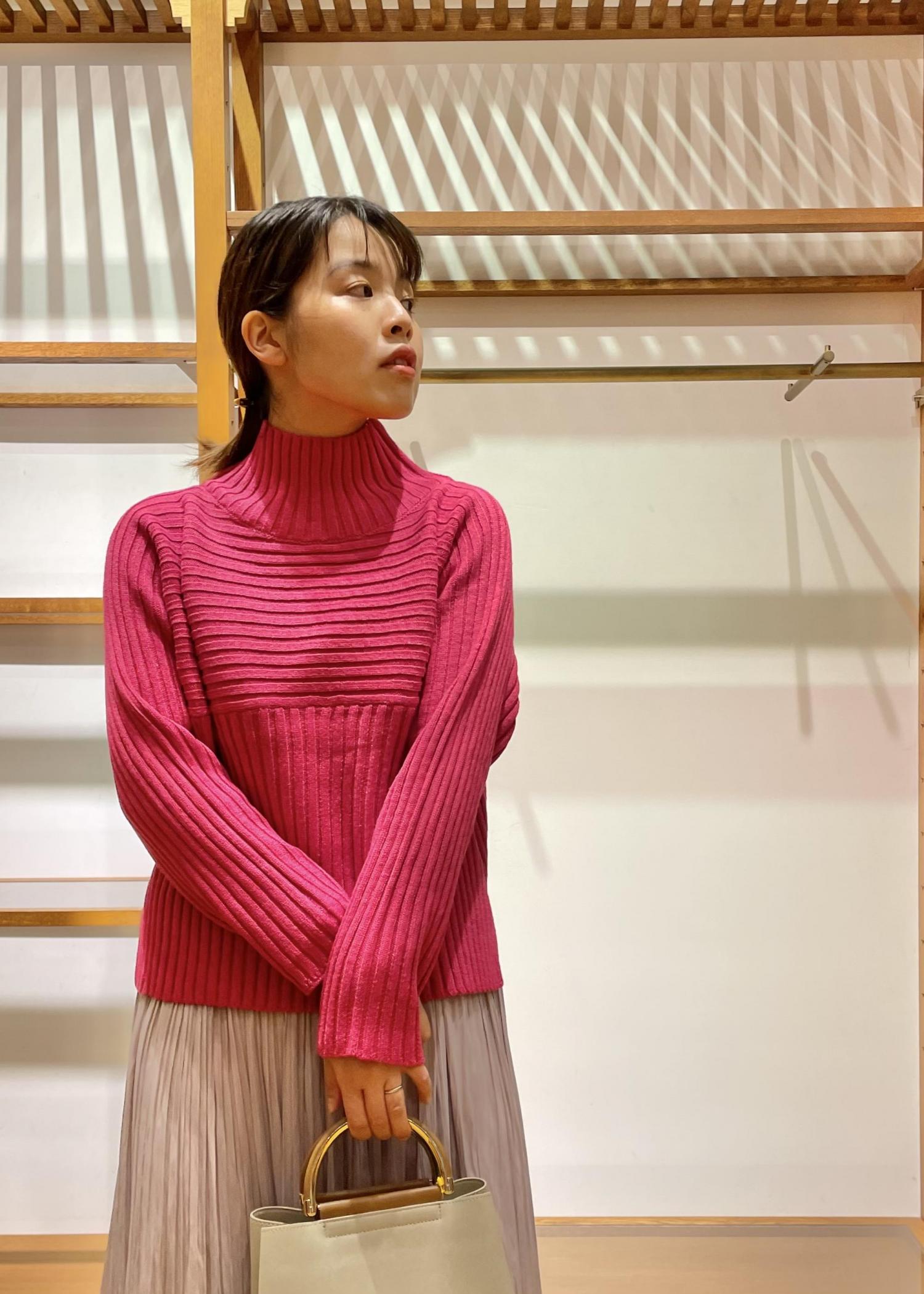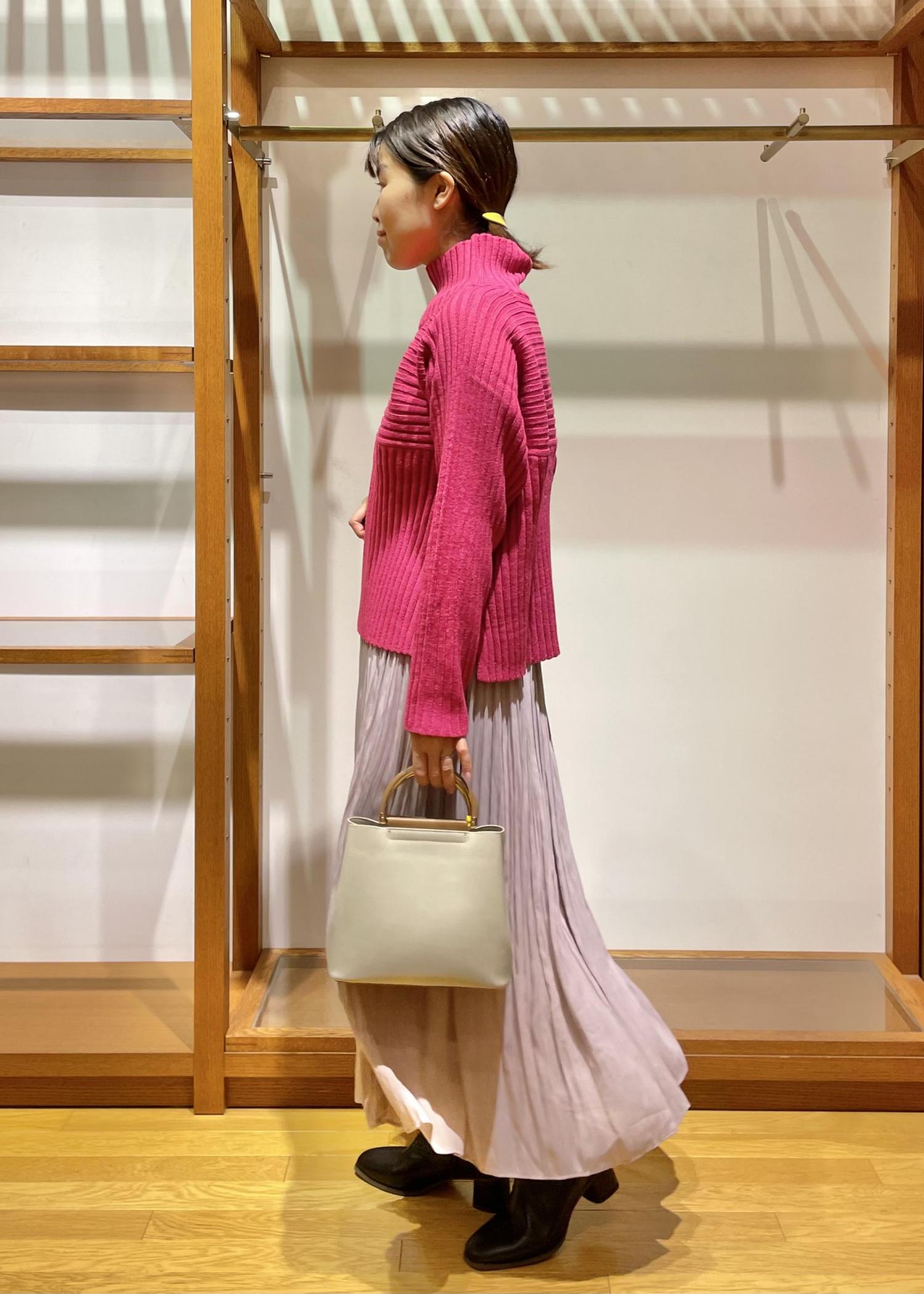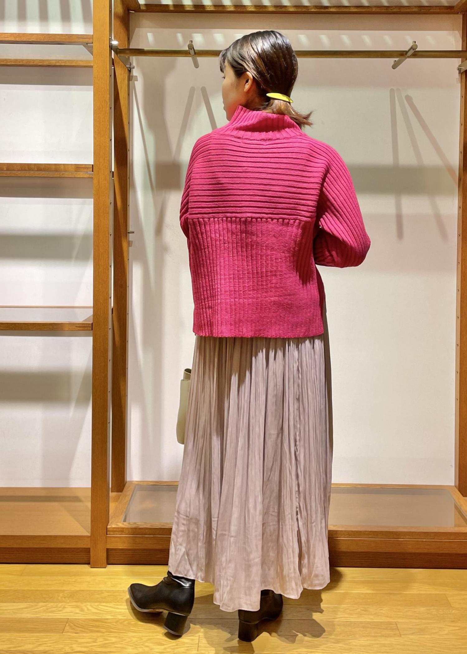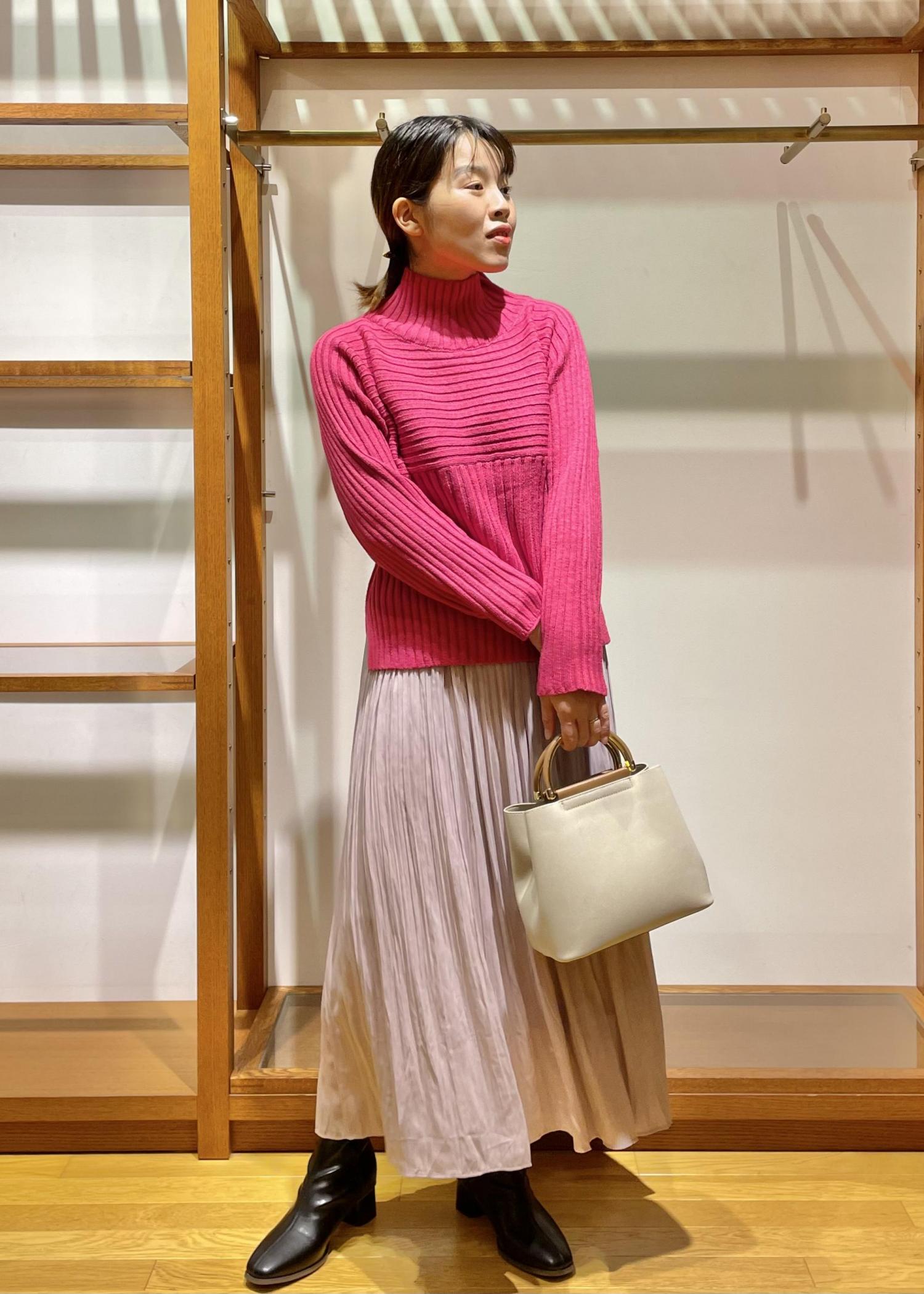 今回はビビッドなピンクに淡いペールピンクのロングスカートを合わせたグラデーションスタイルに。。。