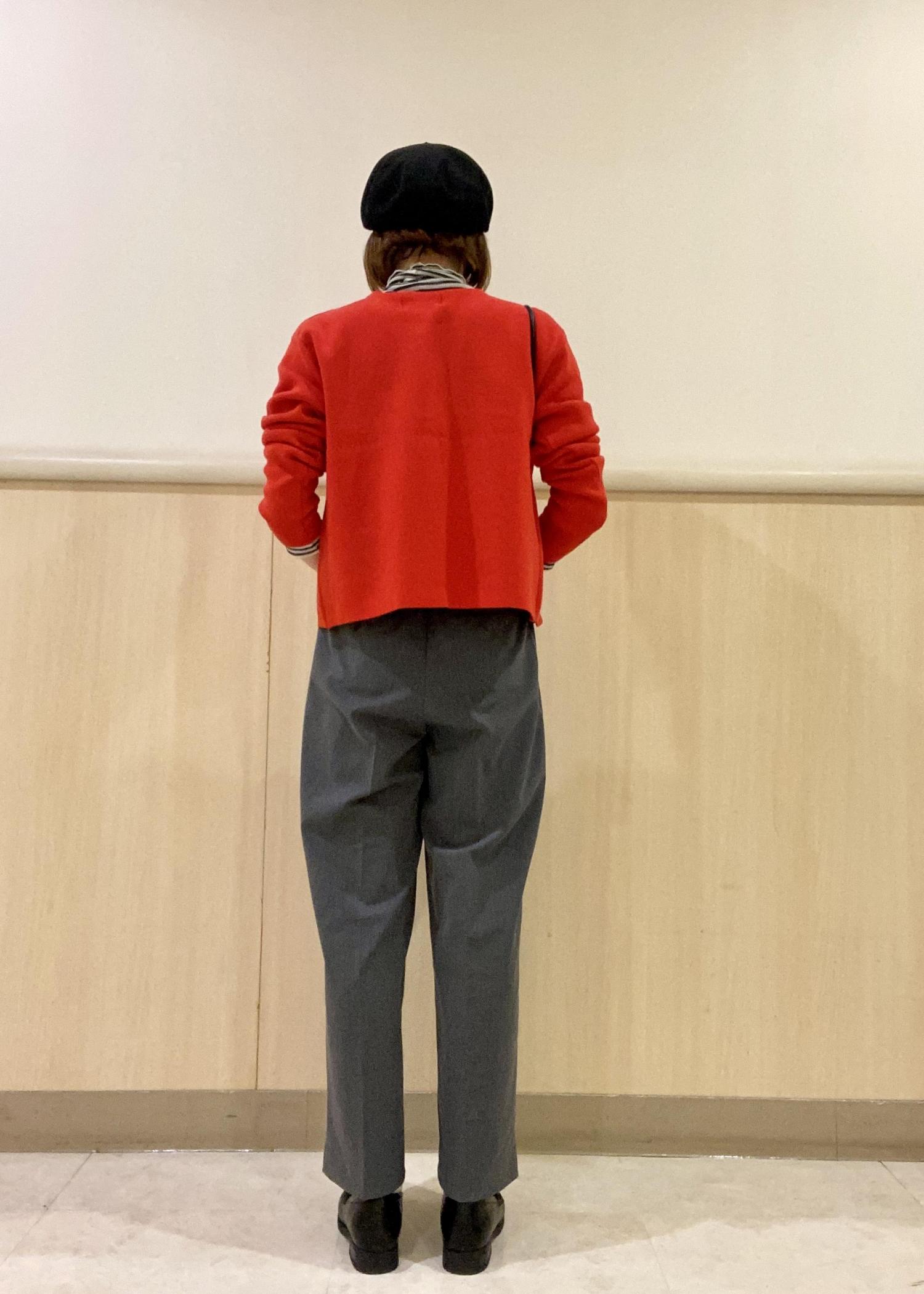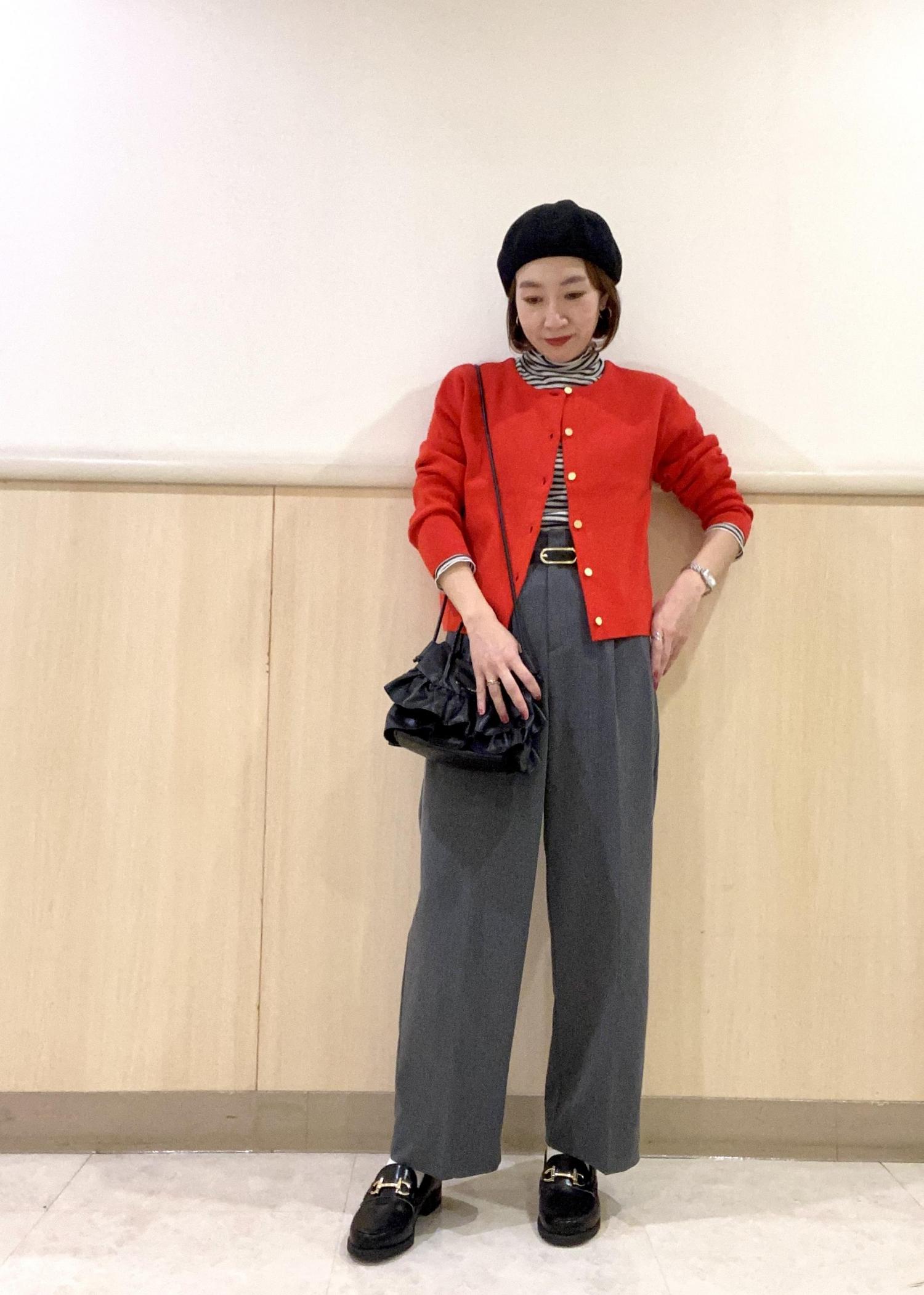 鮮やかなオレンジが目を惹くカーディガンコーデ