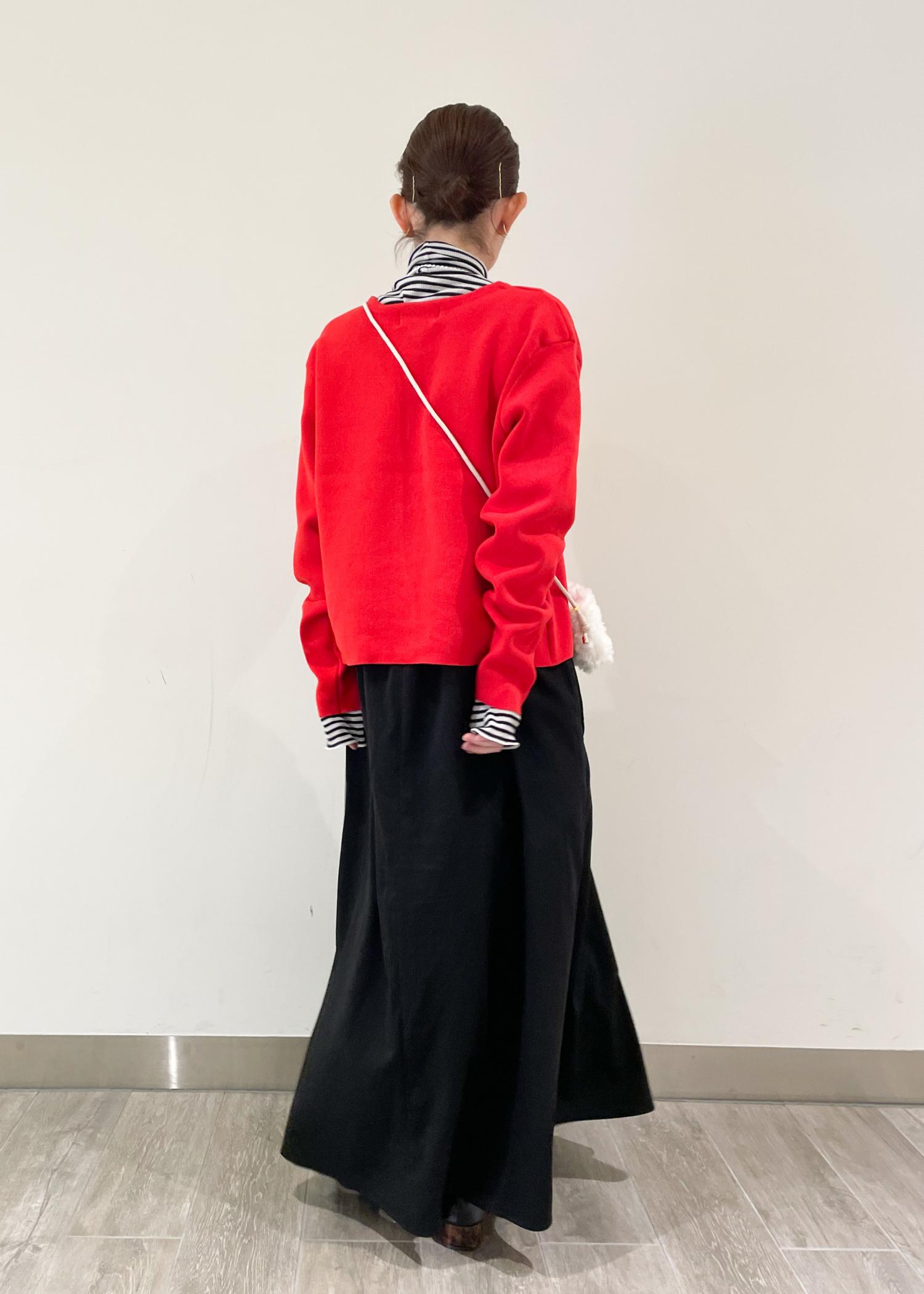 10月に入り、ようやく気候も秋めいてきましたね! この時期活躍するのが、カーディガン☺︎ オレンジが目を引くカーディガンを羽織って モノトーンコーデに華やかさをプラスしてみました♪