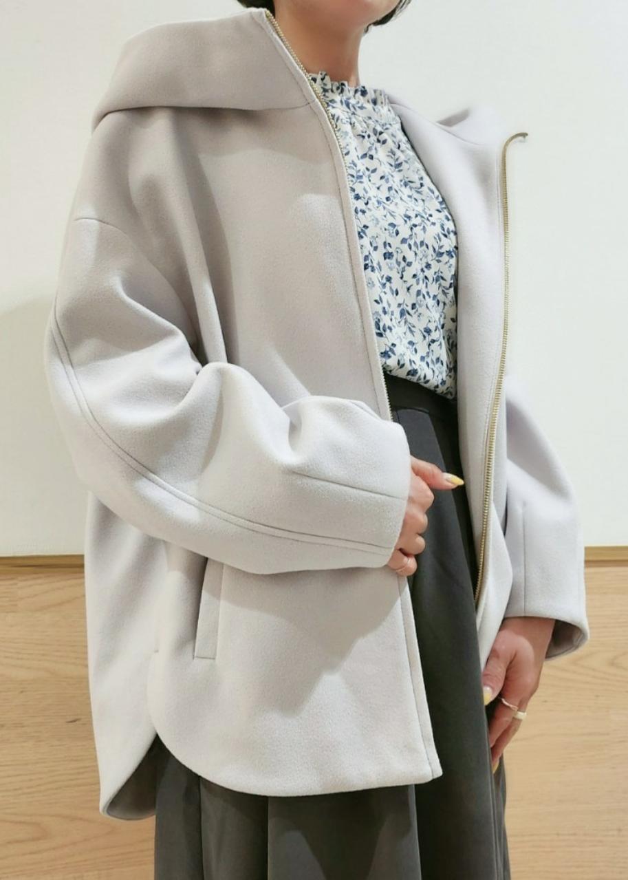 身長が高くないので、オーバーサイズのコートを着るときはショート丈のボトムやヒールブーツを合わせるなど重心を上げることを意識してスタイリングしています。