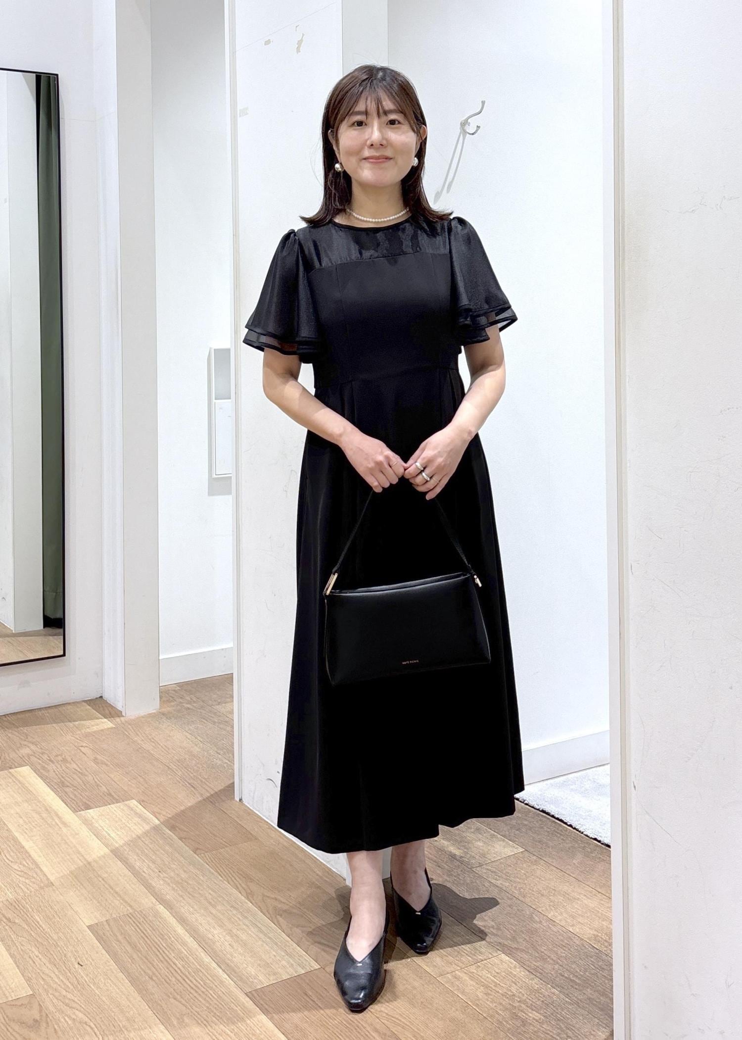 弾力あるニットならではの厚みと、お袖ボリュームが女性らしい。ファーバックをアクセントに。