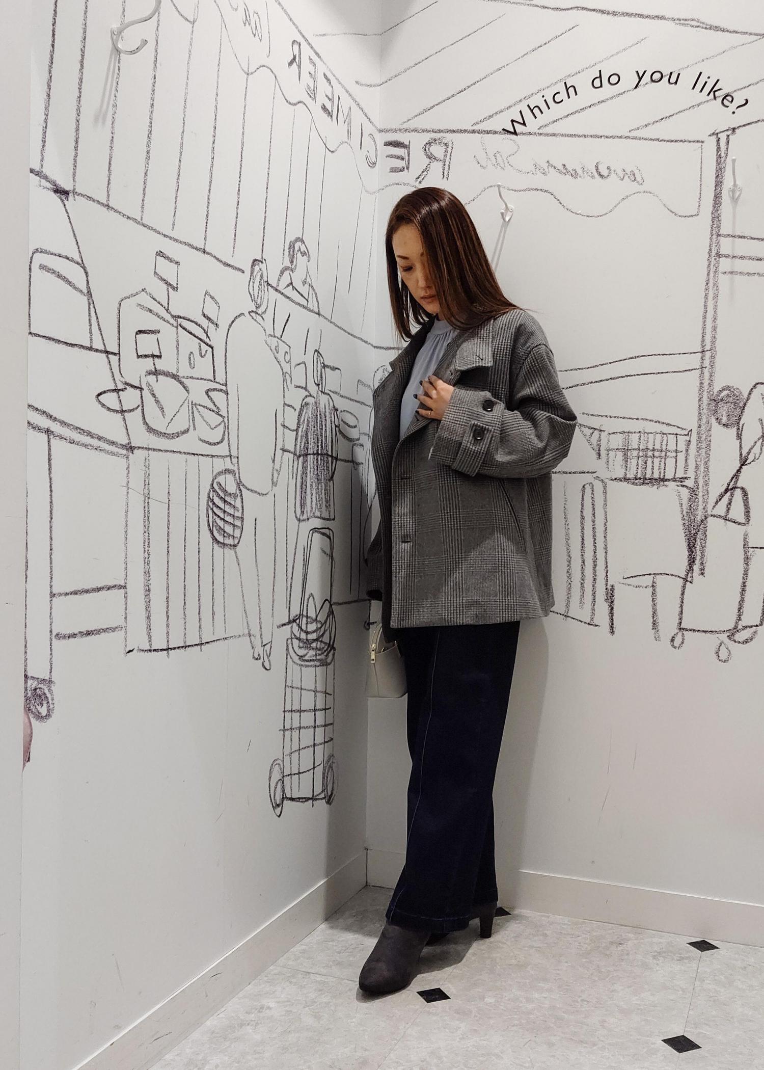 ショートコートですが、短すぎす合わせやすいアウターをキレイめカジュアルにコーデしました。秋冬にオススメのコーデです。ブラウスもお袖のレースが素敵て、アウターを脱いでもワンポイントオシャレなコーデです。