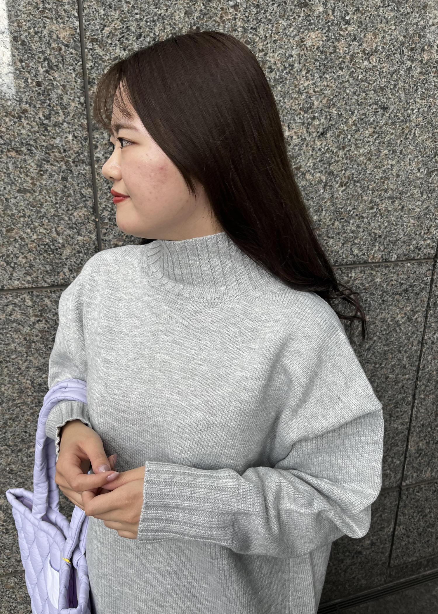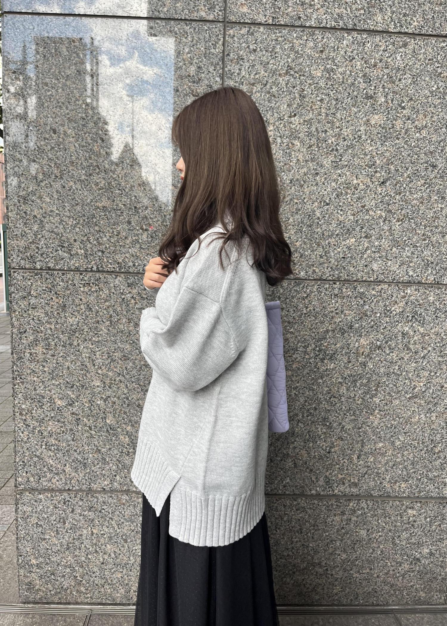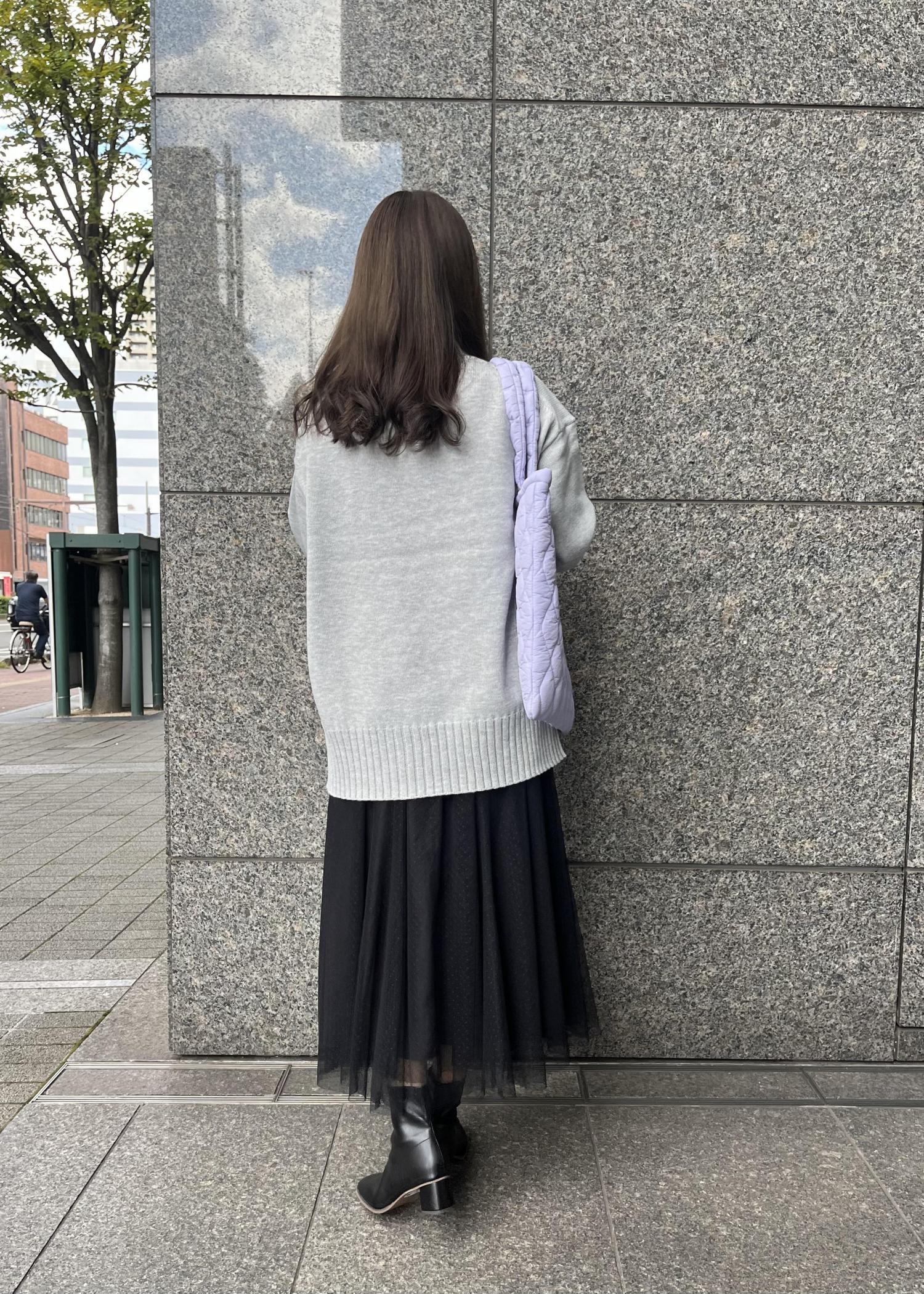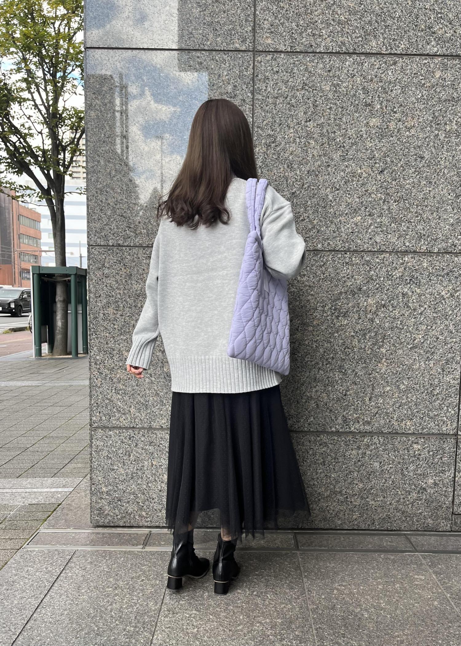 オーバーサイズのニットとチュールスカートで少し甘めのニットスタイルに。