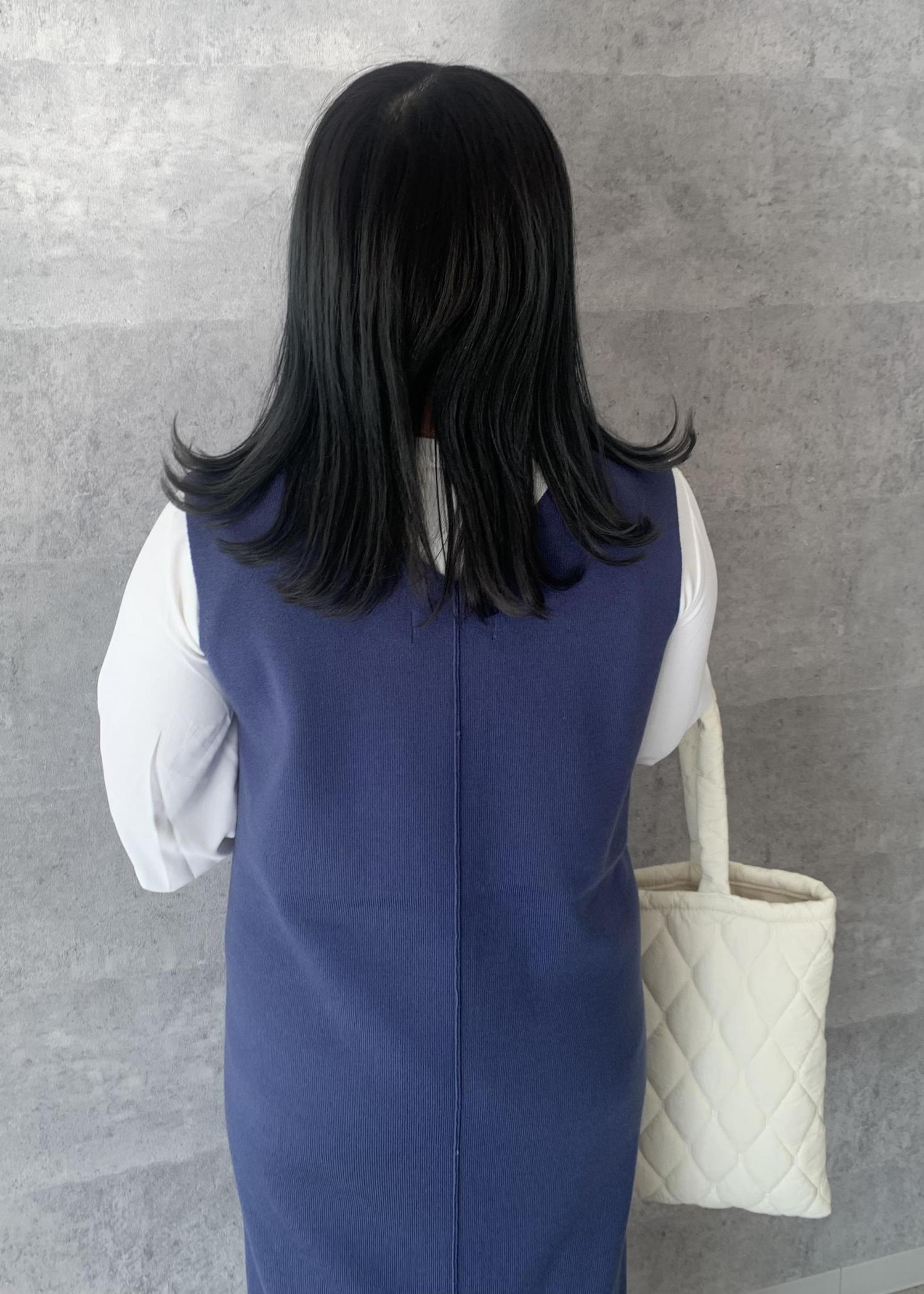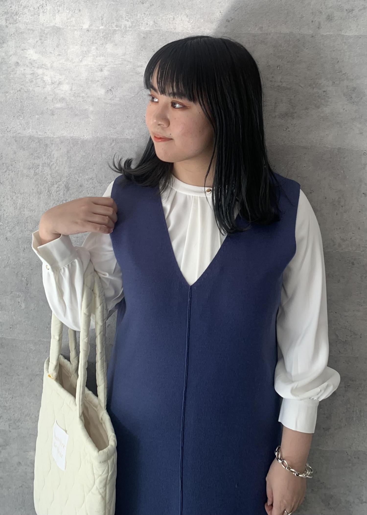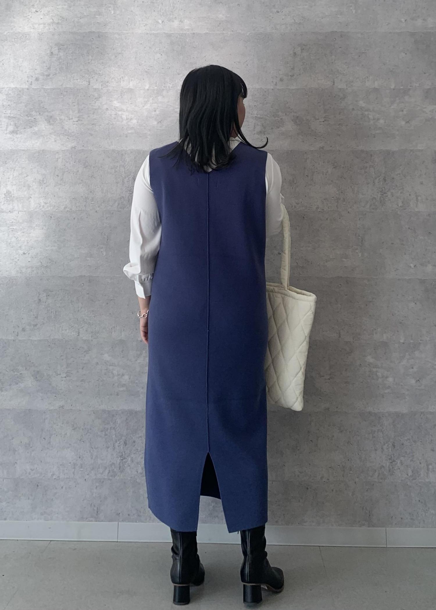 毎年人気の可愛くて楽ちんなニットジャンスカを使ったお出かけコーデです。