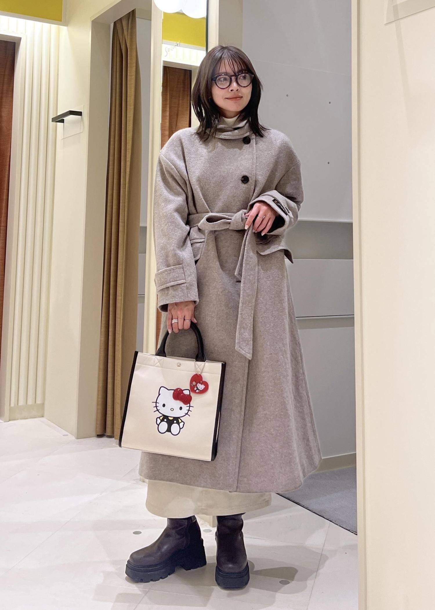 ウエスト切替のワンピースに、スウェットを重ね着してスカート風に合わせたカジュアルコーデです。