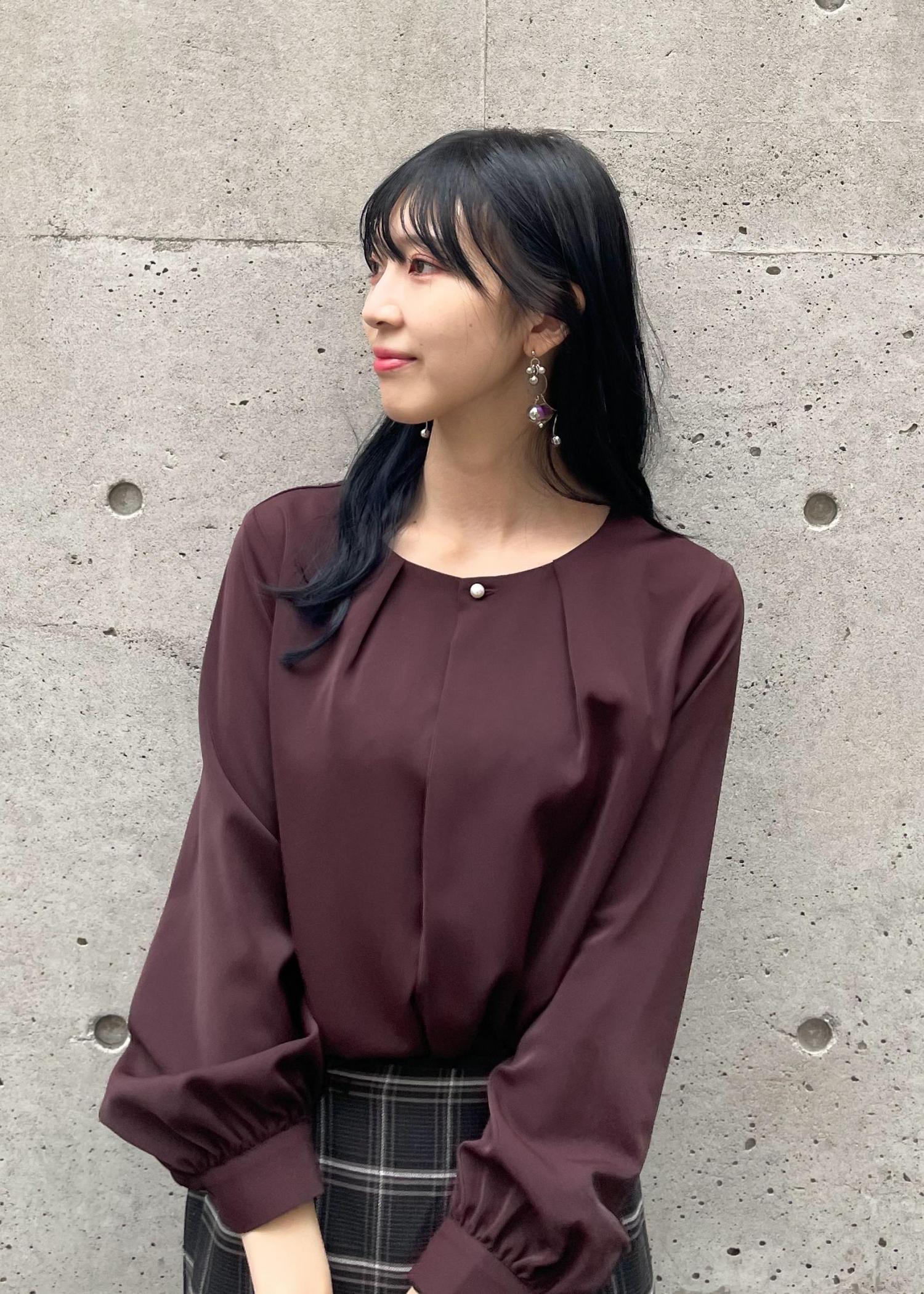 秋らしいカラーのブラウスとチェックのスカートでキレイめコーデにしました。お仕事や七五三などにも使っていただけますよ。
