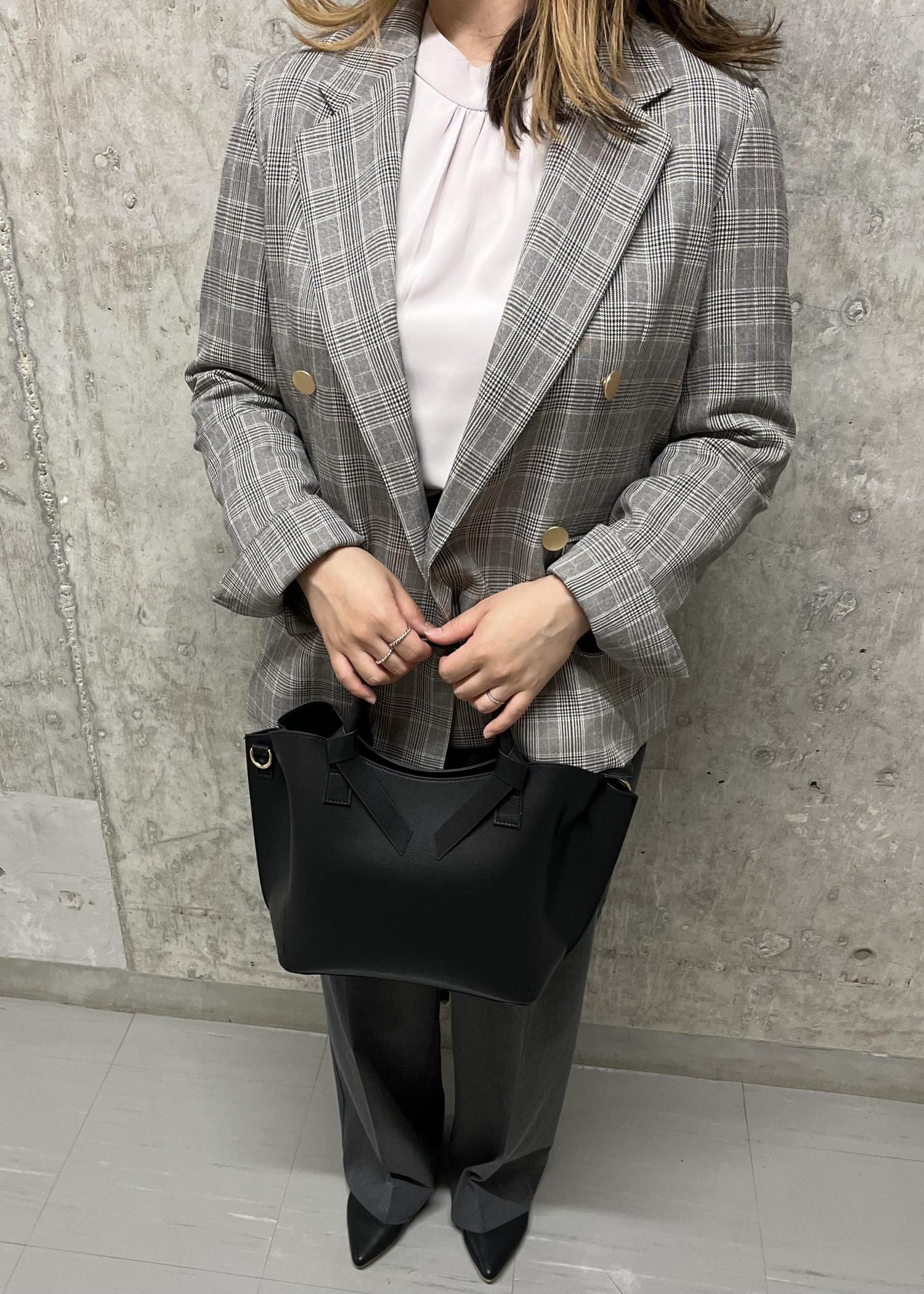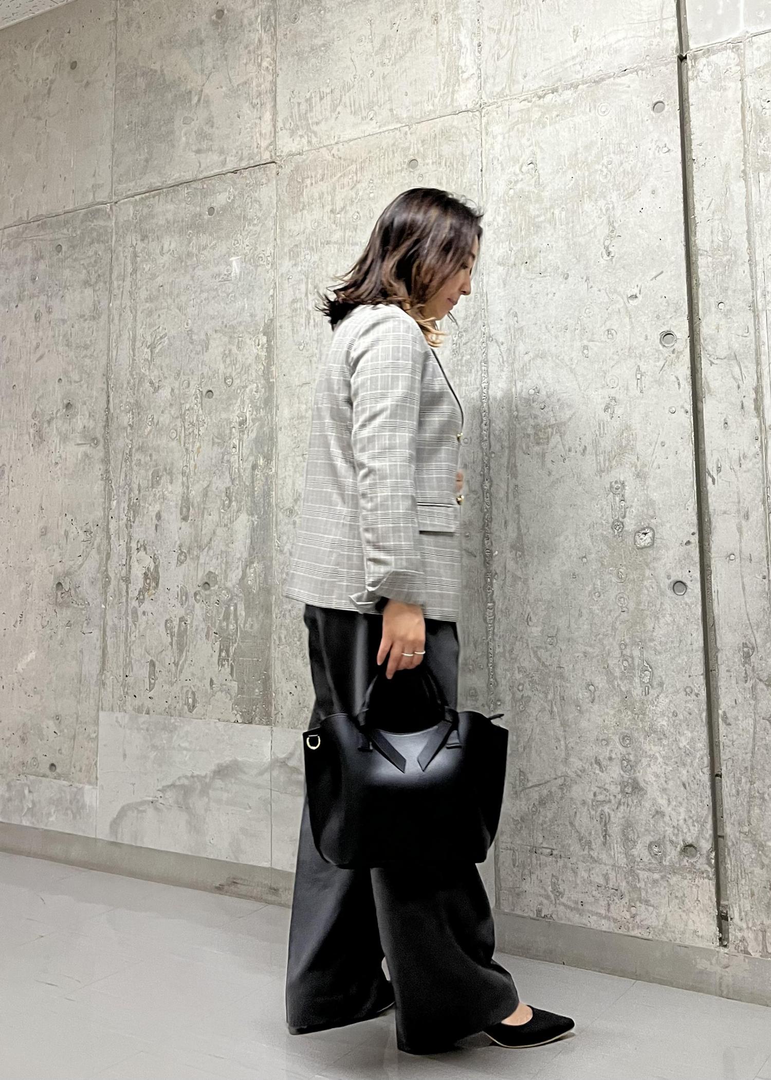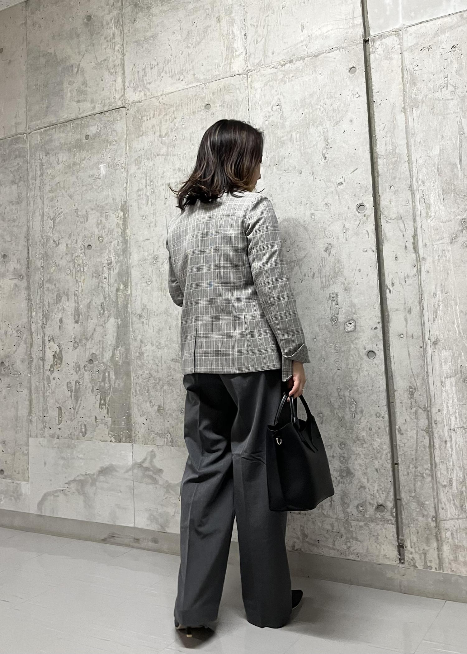 チェック柄ジャケットのオフィスカジュアルコーデ