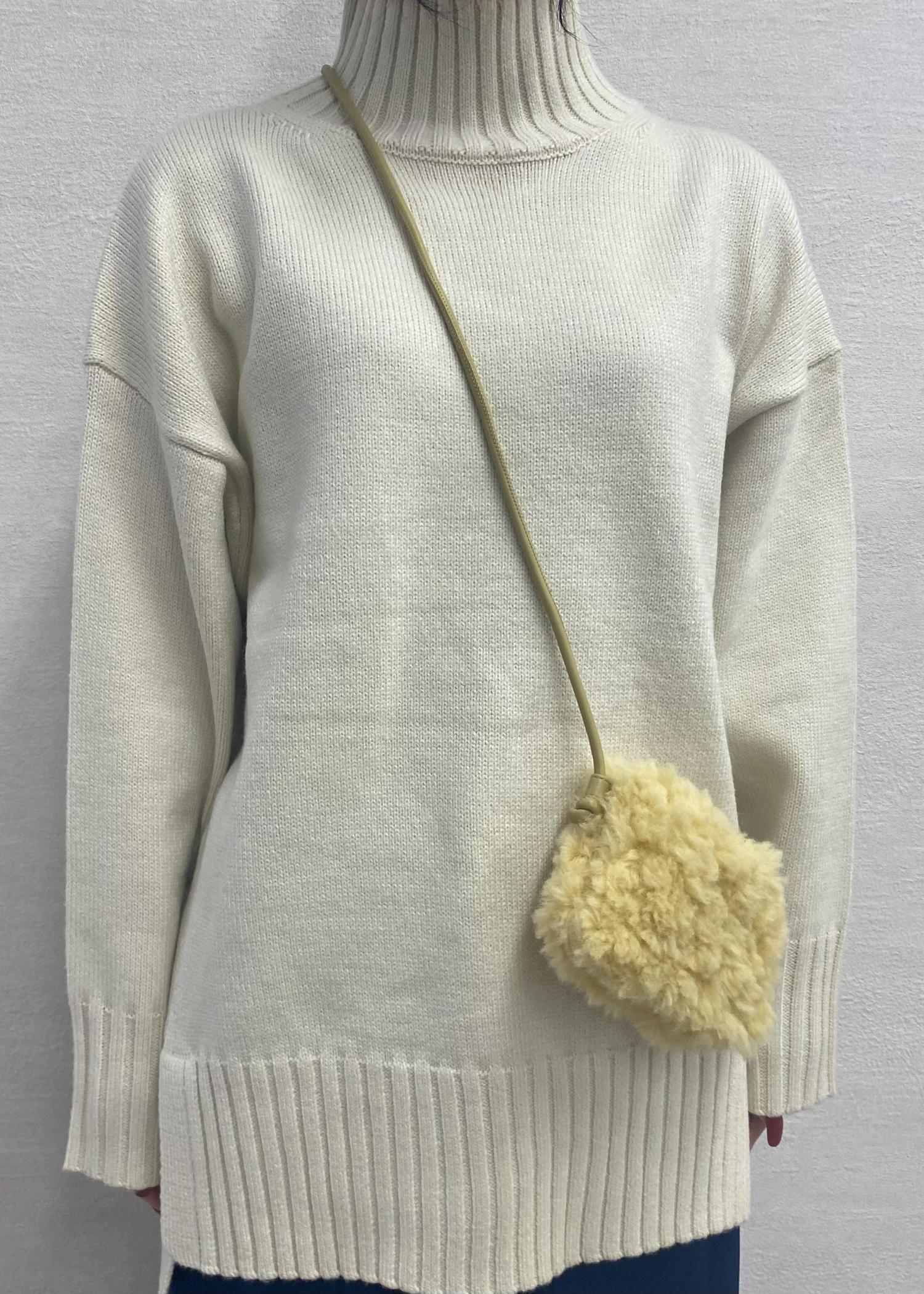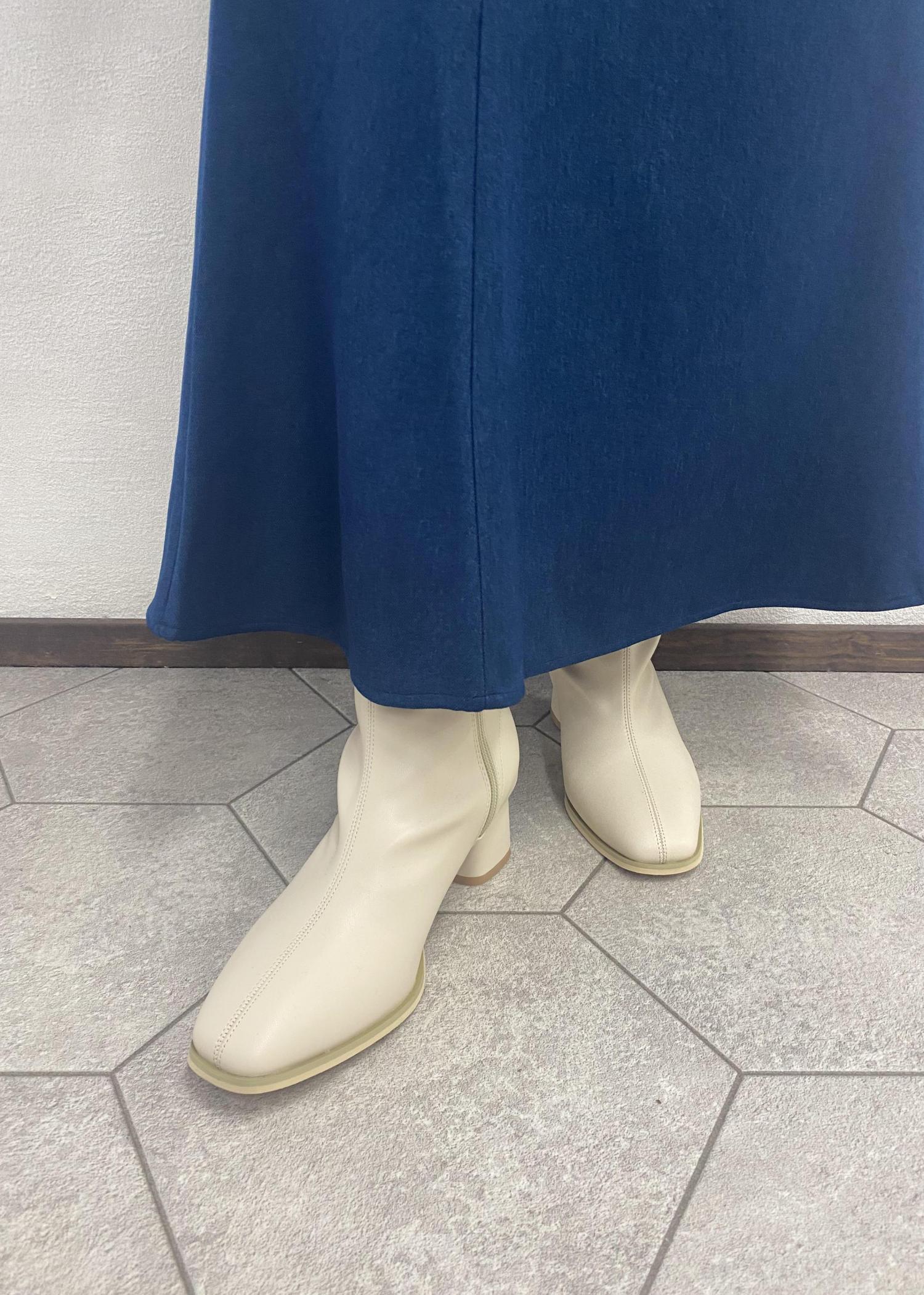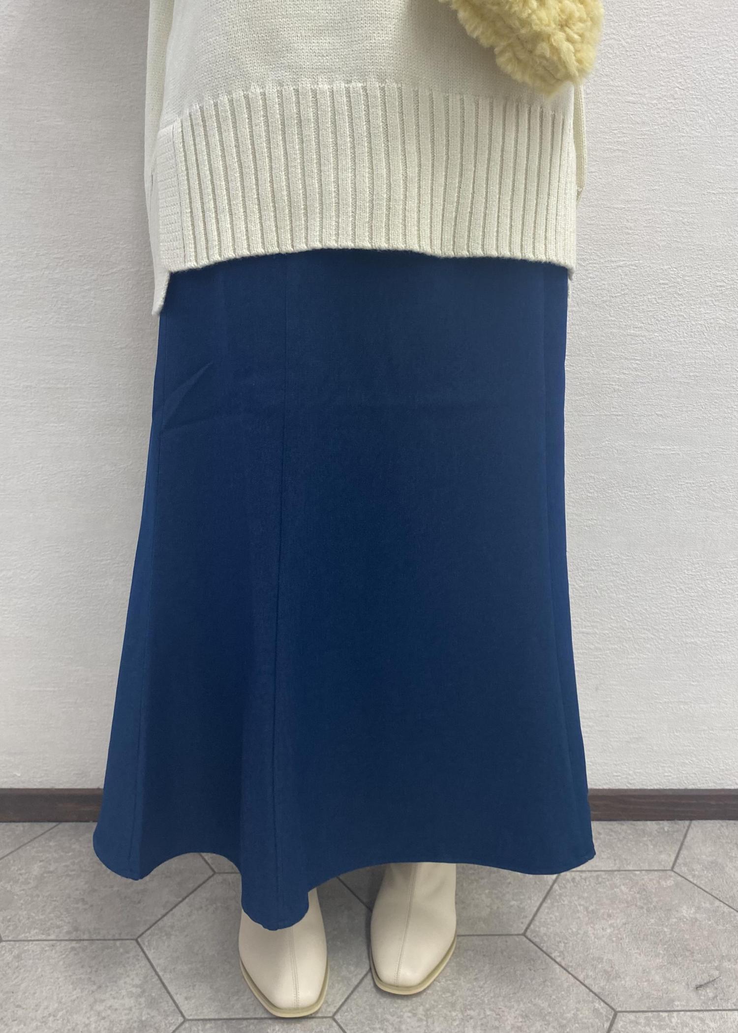 ゆったりとしたニットはヒップも隠れる長さで安心感があり、スカートはマーメイドラインで足を綺麗に引き立ててくれるコーディネートです。