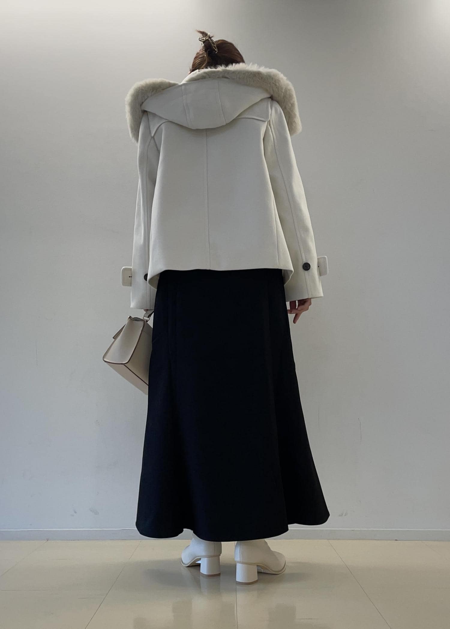 ピンクのシャギーニットとマーメイドスカートで女性らしさを存分に使いました。ダッフルコートも合わせて、冬コーデです!