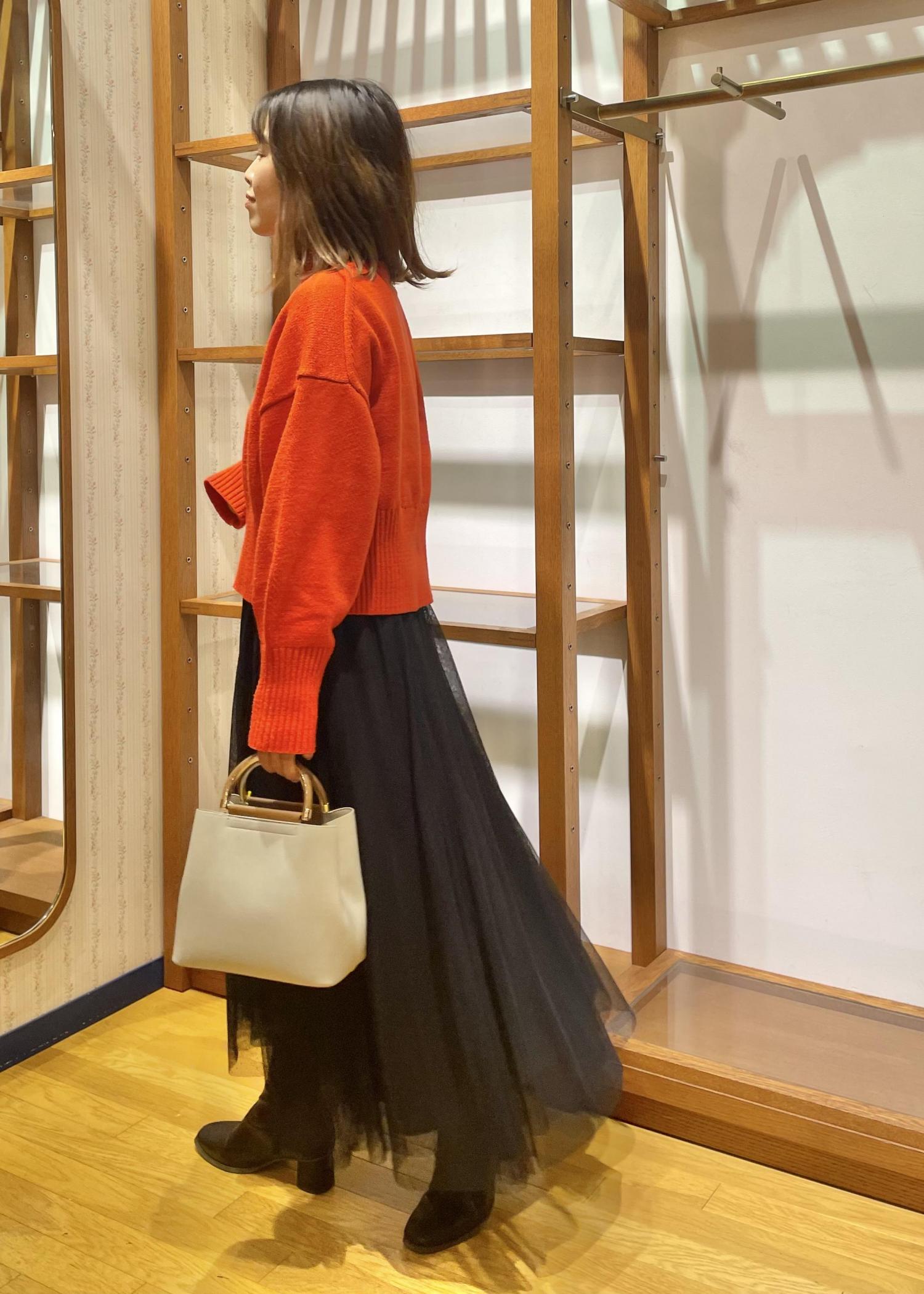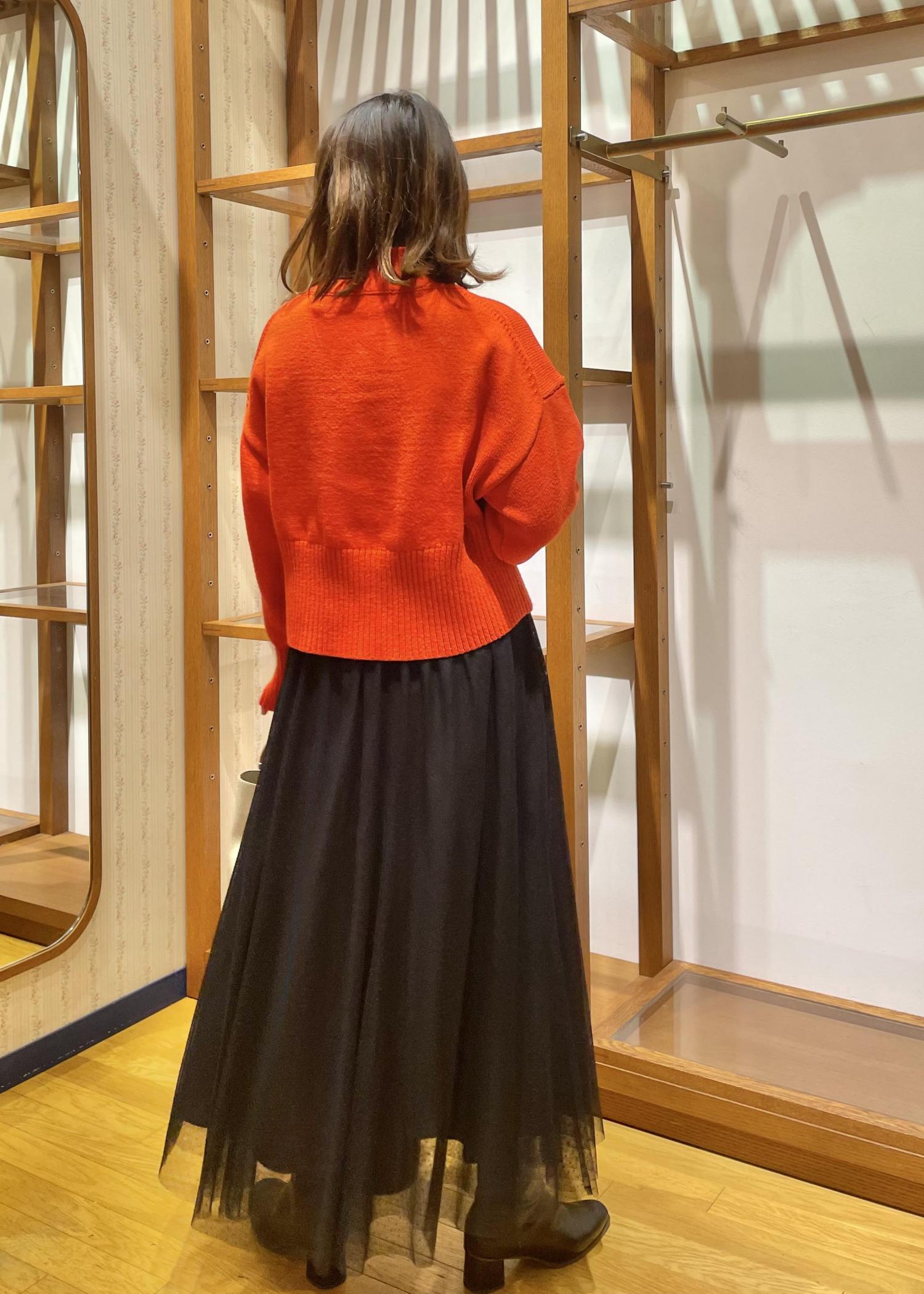 色がはっきりしているので、チュール素材のスカートを合わせて少し柔らかさもプラス。