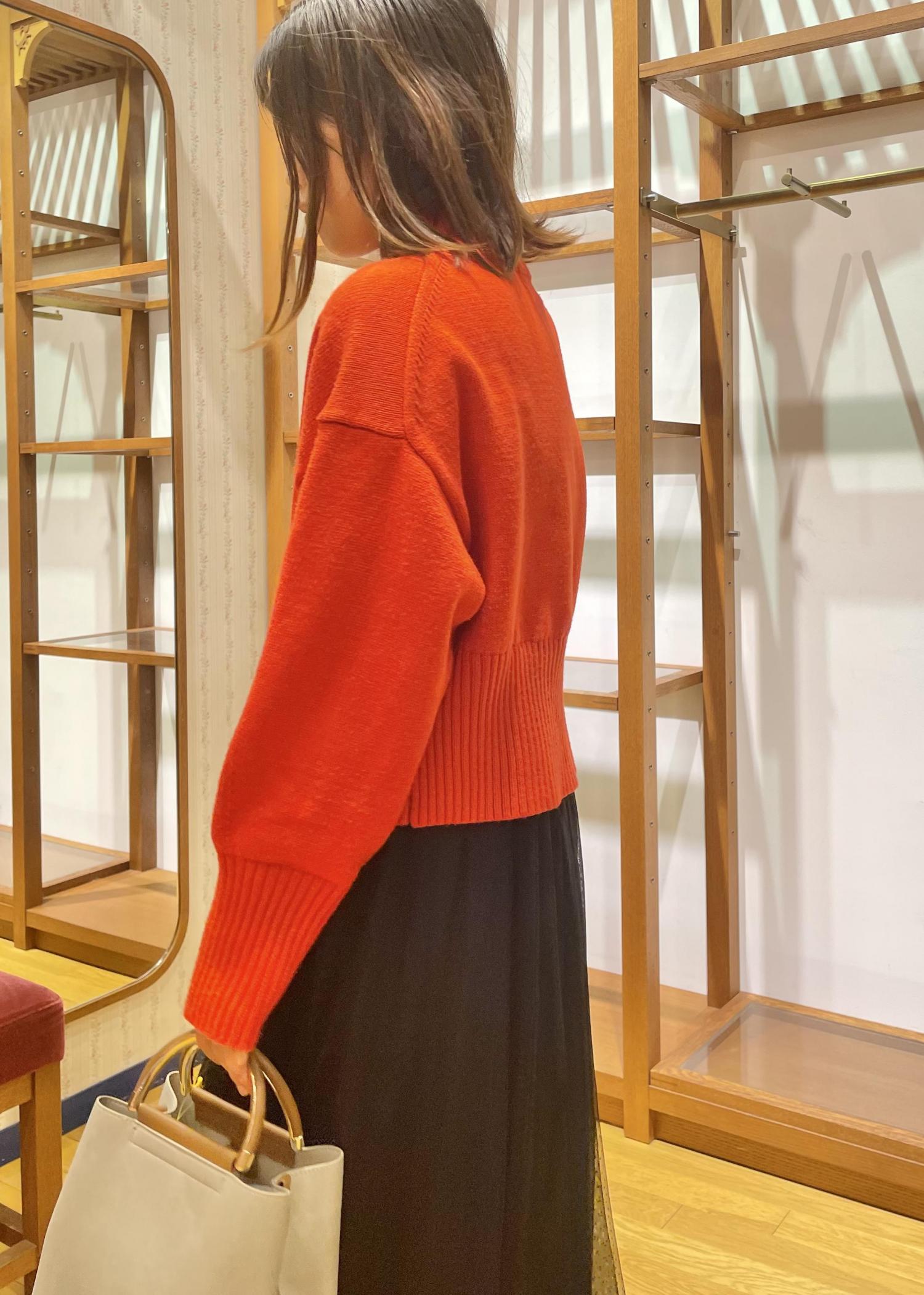鮮やかな赤のクロップド丈ニットとブラックのチュールスカートを合わせた、甘めな印象もあるパキッとカラーコーデです!