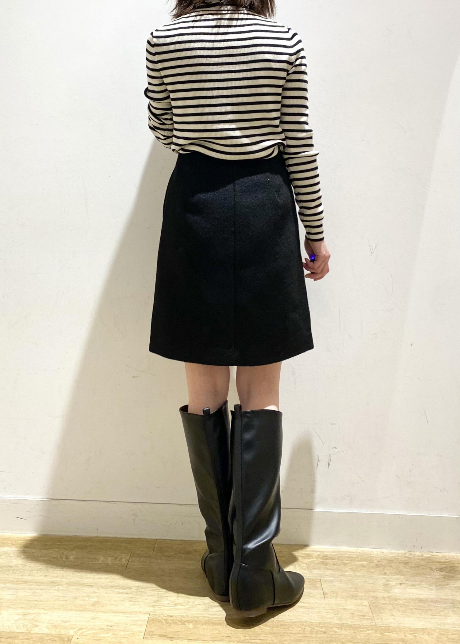 カジュアル要素の強いボーダーをミニ丈スカートで大人フェミニンに仕上げました♩