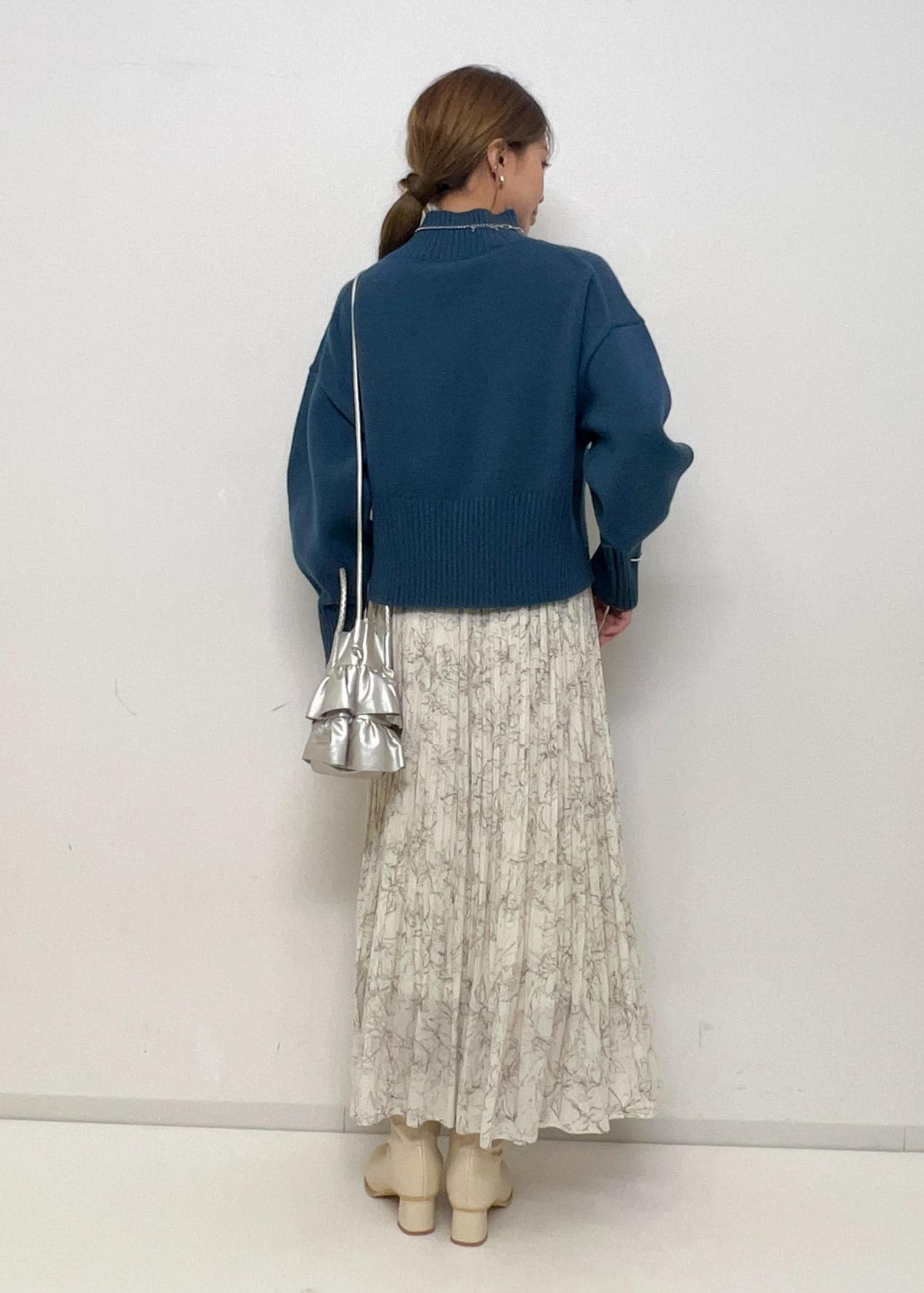 人気のプリーツスカートは、クロップド丈のニット合わせならバランス良く着やすいです◎