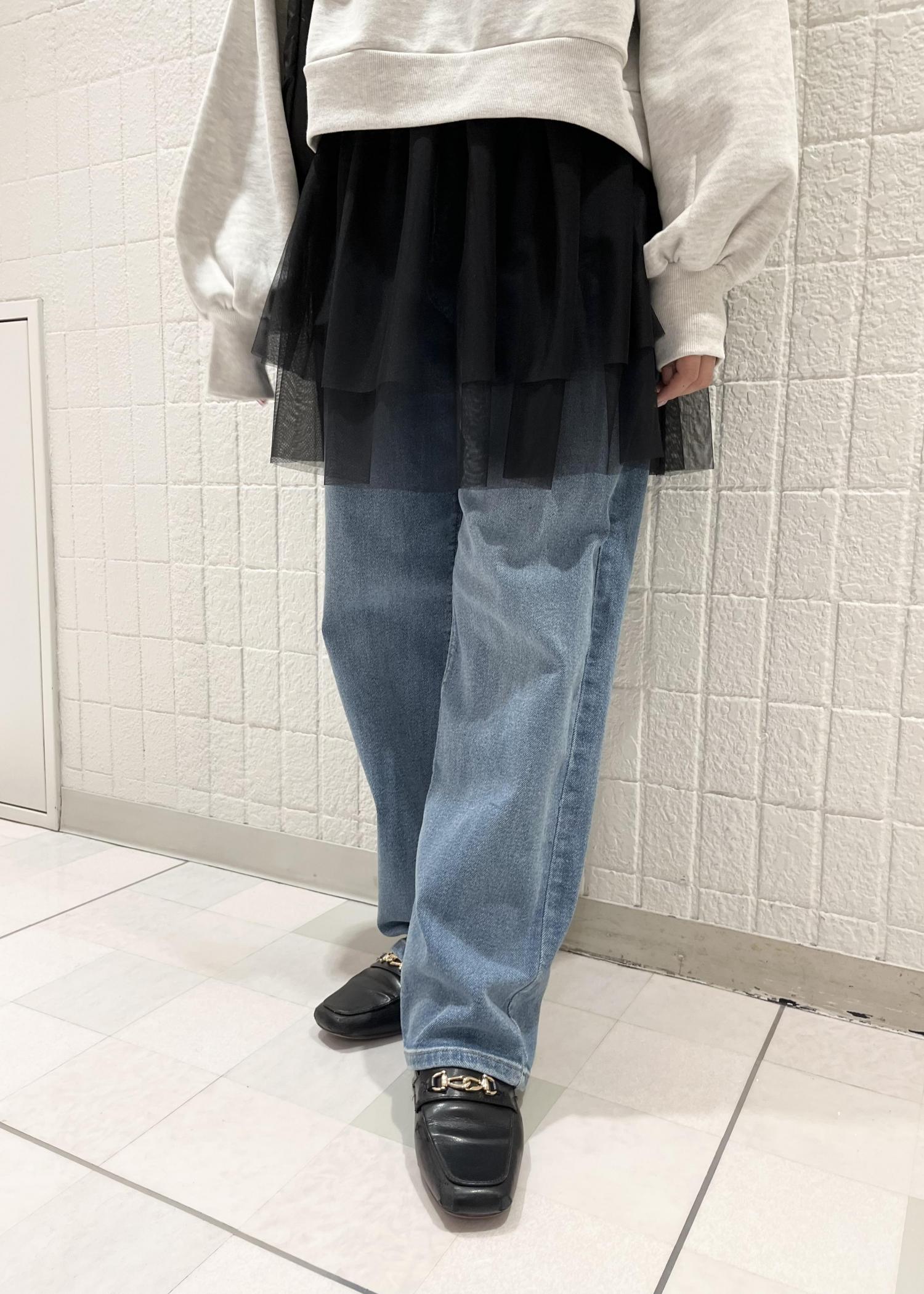 ショート丈のトップスと合わせるとスカートを合わせているような印象になるので、一気に今季らしい着こなしを楽しんで頂けます◎