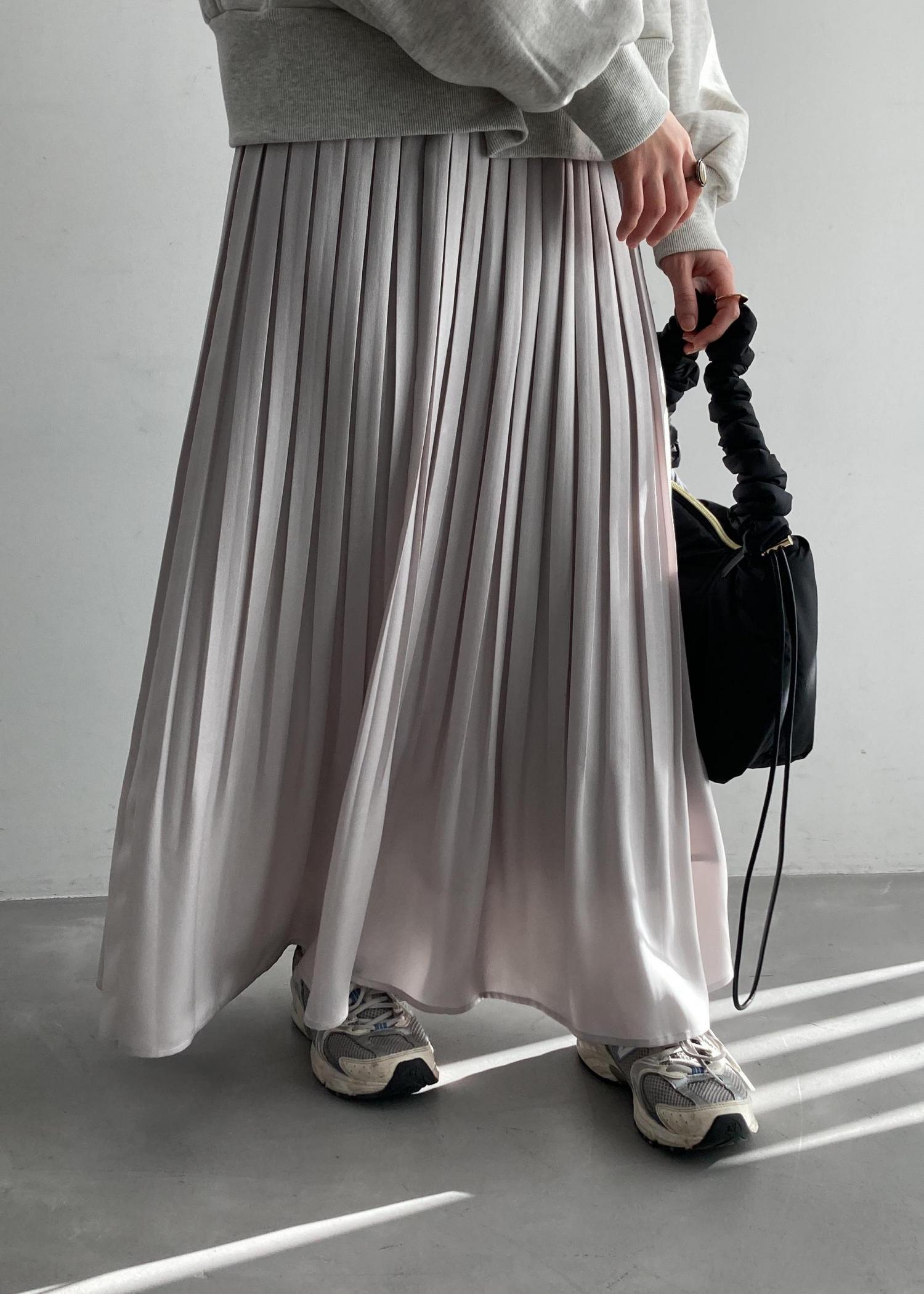 キラキラと光るラメが可愛いプリーツスカート。 トップスはアウトレット限定のスエットを合わせています。 ※シューズは私物です。