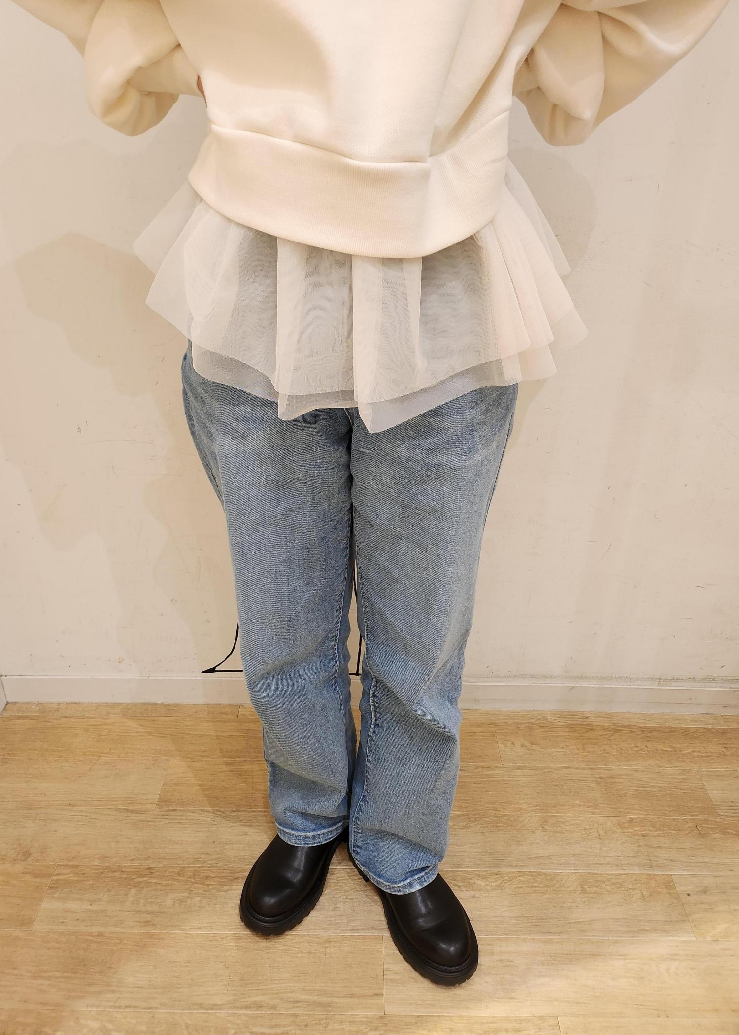 裏起毛の暖かいスウェットは、冬の強い味方。 短丈+チュールで今年らしくおしゃれ+体型カバーにも◎