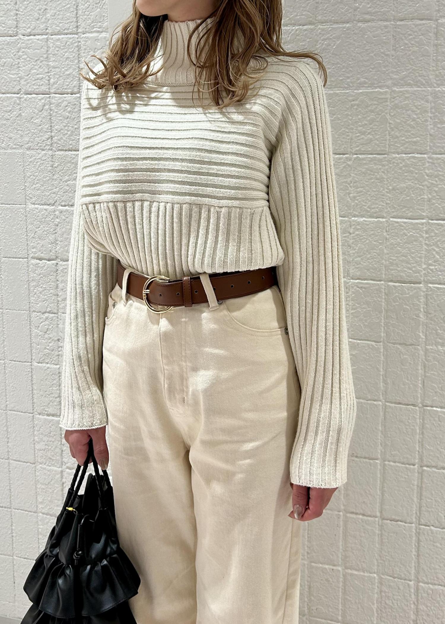 毎年大人気のリブ切替ニットを使ったワントーンコーデ。