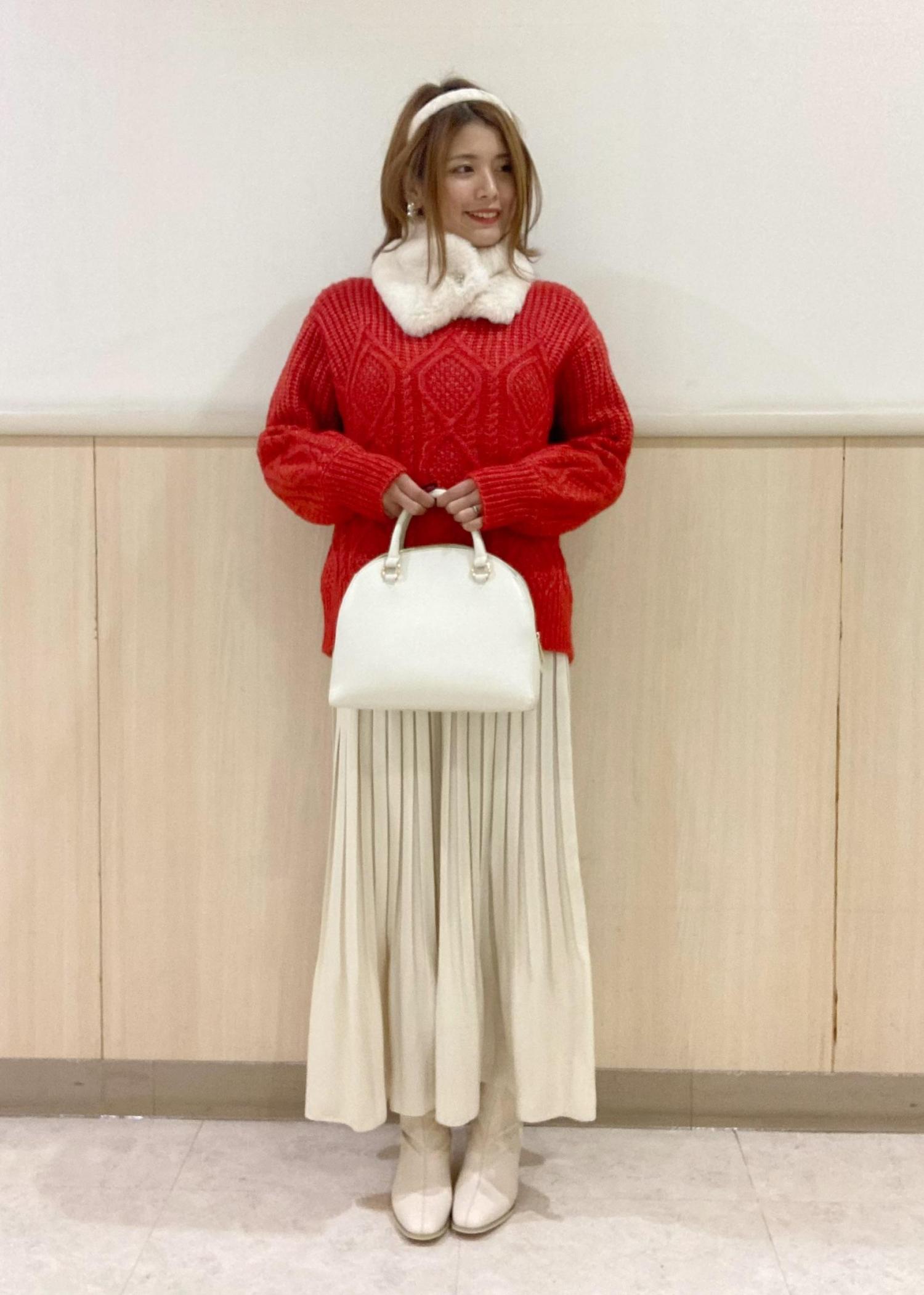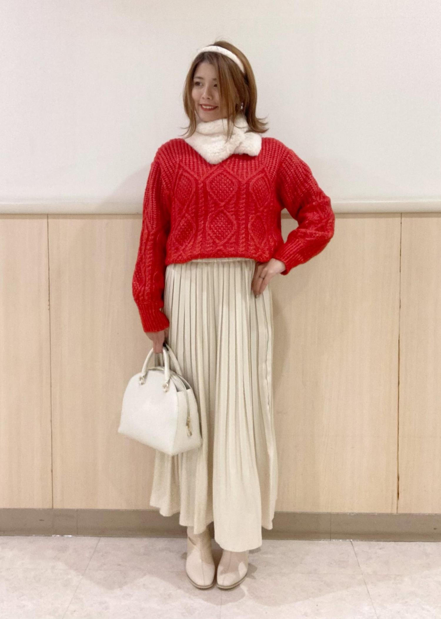写真映え間違いなしの赤ニットを主役にしたクリスマスコーデです♡ サンタさんを意識して赤と白で統一したのがポイントです♪