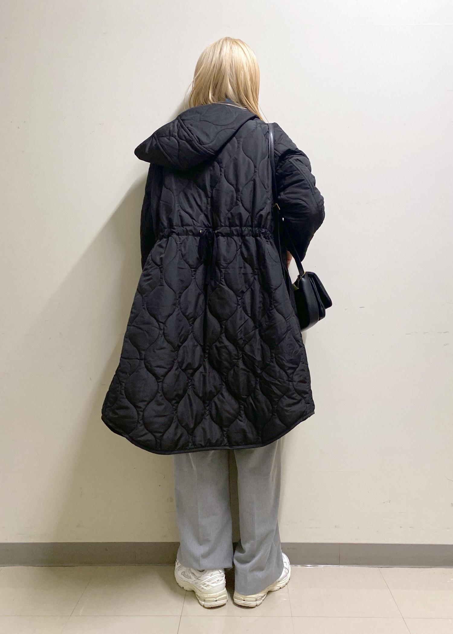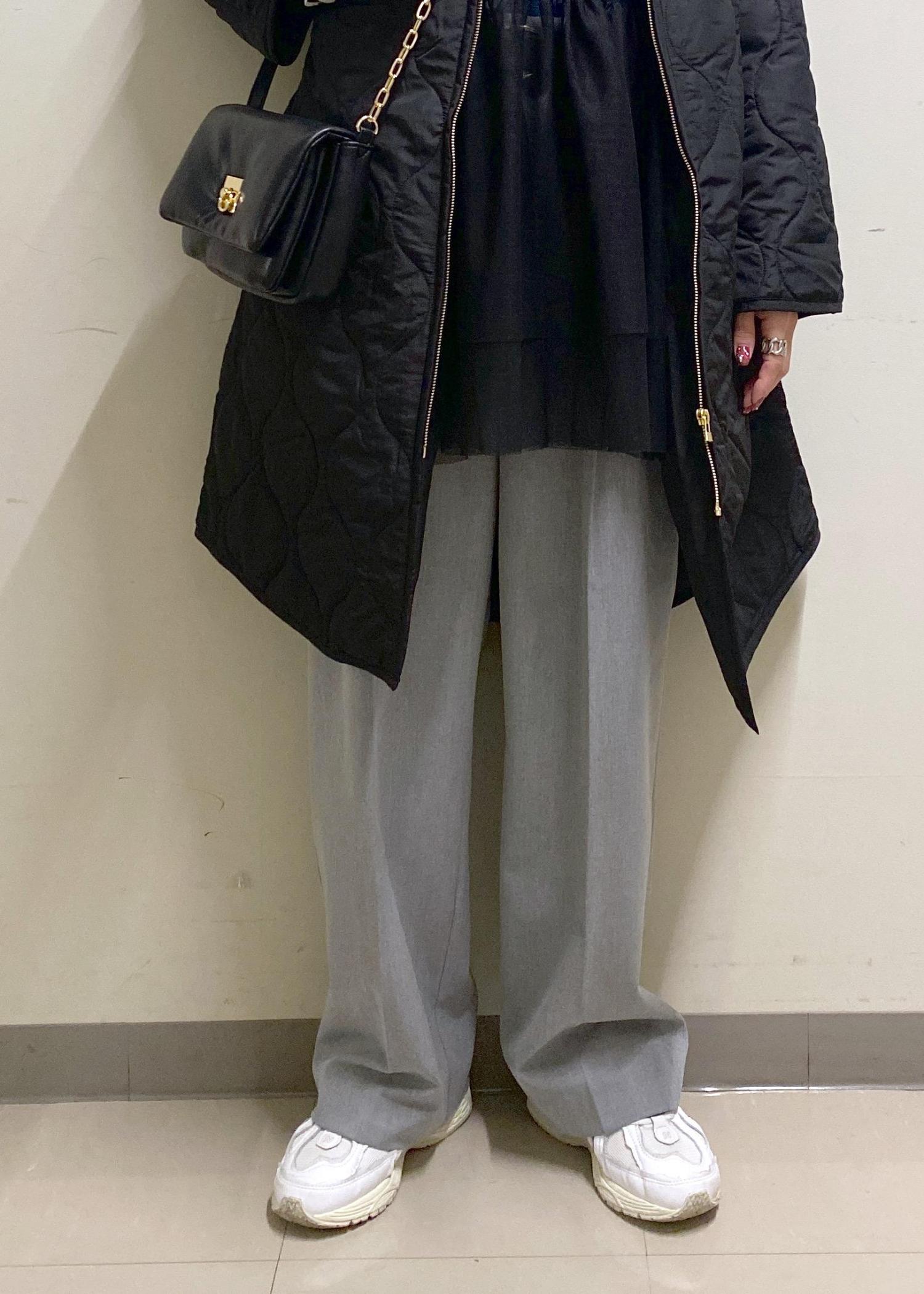 新作のアウターを使ったカジュアルコーディネートです☺︎ ニットの上からチュールのインナーを重ねてレイヤードしてみました。