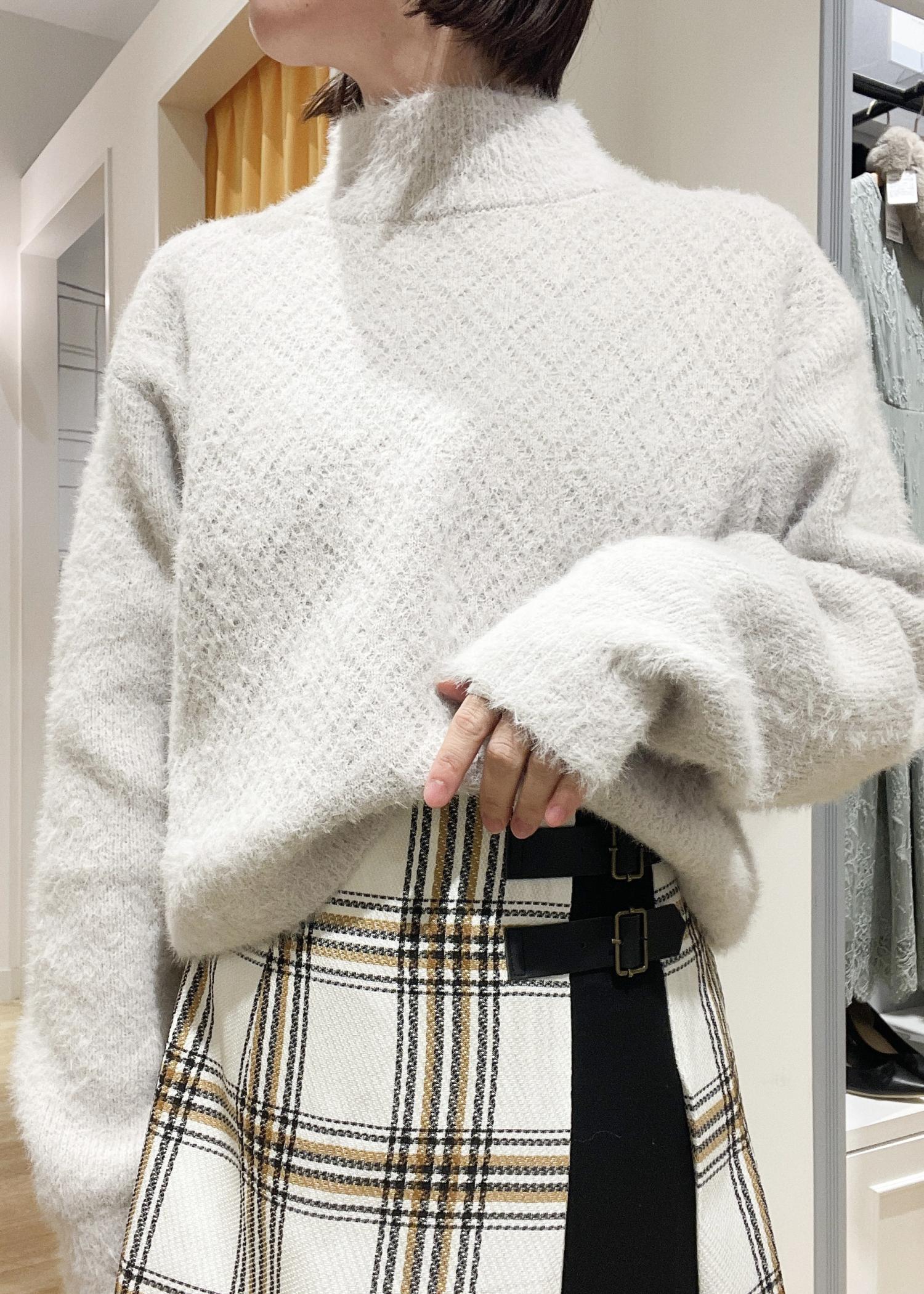 チェックスカートが主役のコーディネート☺︎ 合わせたシャギーニットもふわふわで冬におすすめの1枚です♪