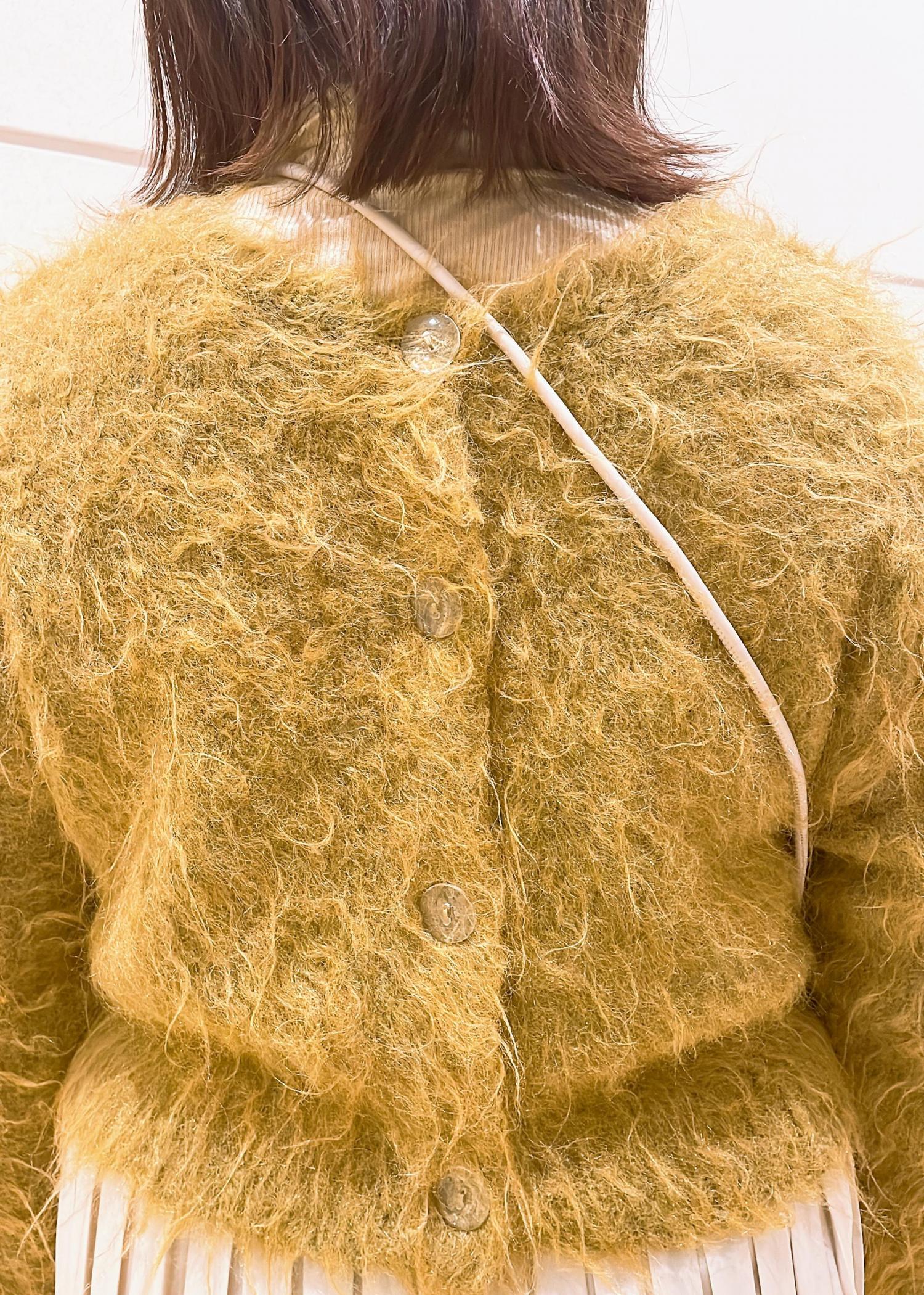 ニットカーディガンはボリューム感がありますが、トレンドの短丈でスカートやパンツなどバランス良く着て頂けます!