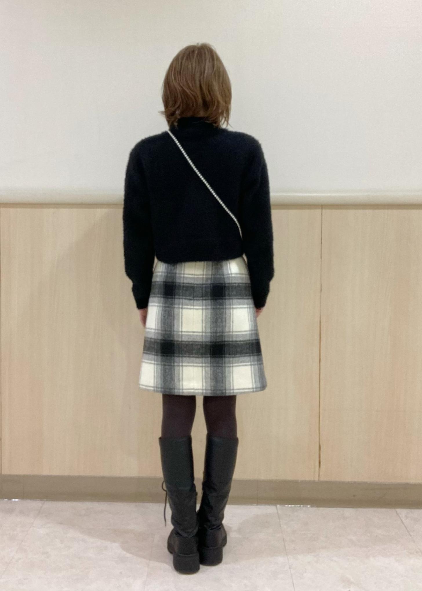 スマホショルダーがポイントのミニ丈スカートコーデ