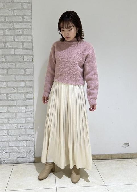 ふわふわニットとラメプリーツスカートで 大人可愛いスタイリングに仕上げました!!
