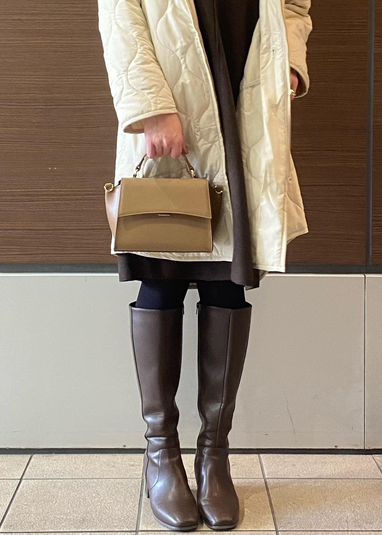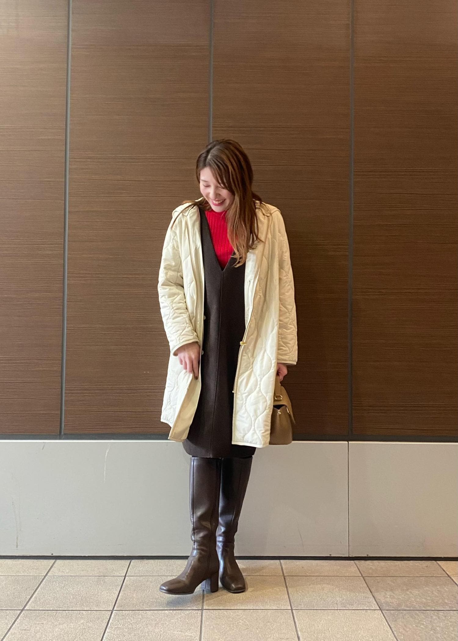 家族とクリスマスのお出かけにオススメのあったかコーデです。 ミニ丈でママも可愛く〜♪ 赤をポイントに華やかな大人カラーで仕上げました。