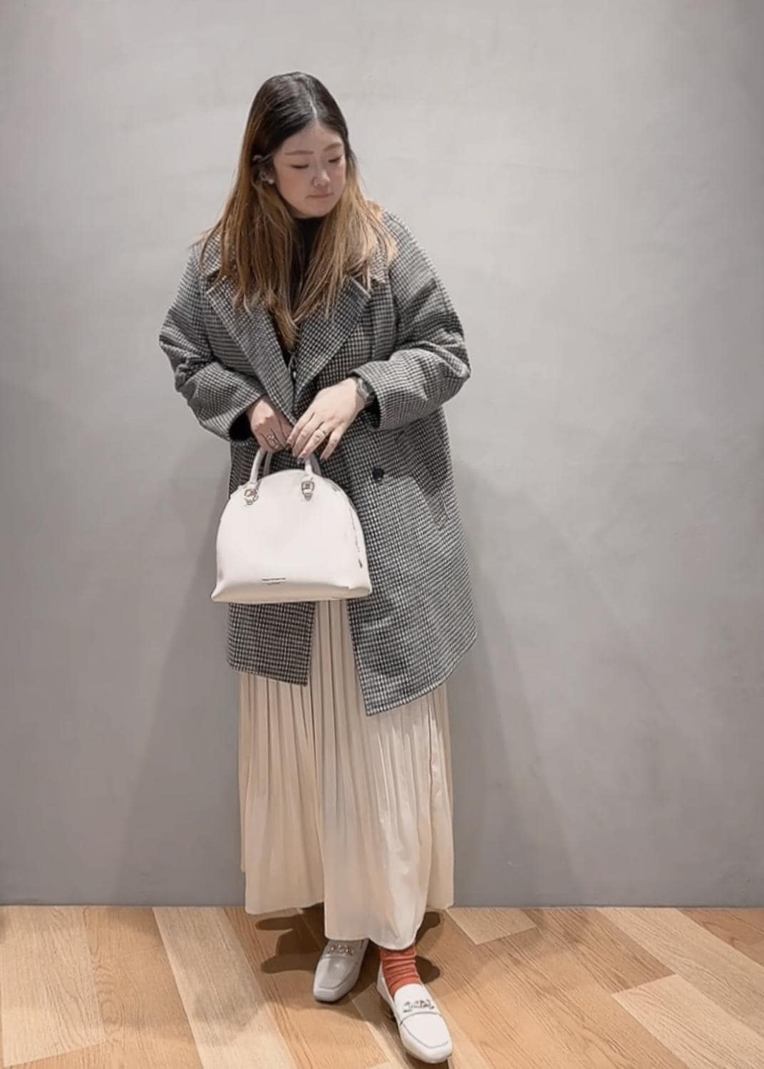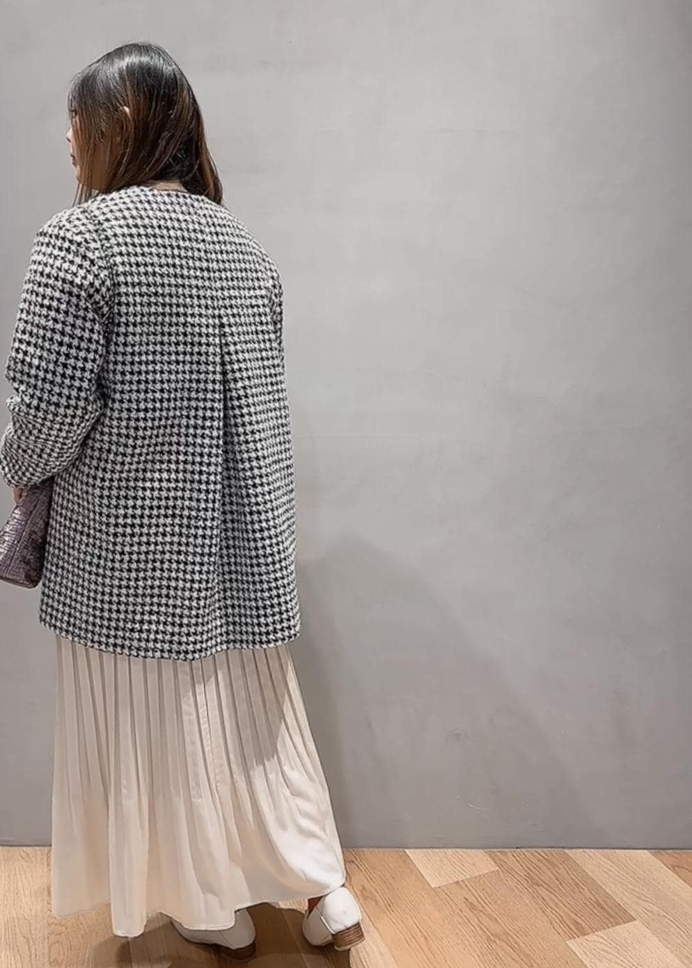 ノーカラーのデザインなのでハイネックやタートルネックのインナーと合わせても素敵ですね◎