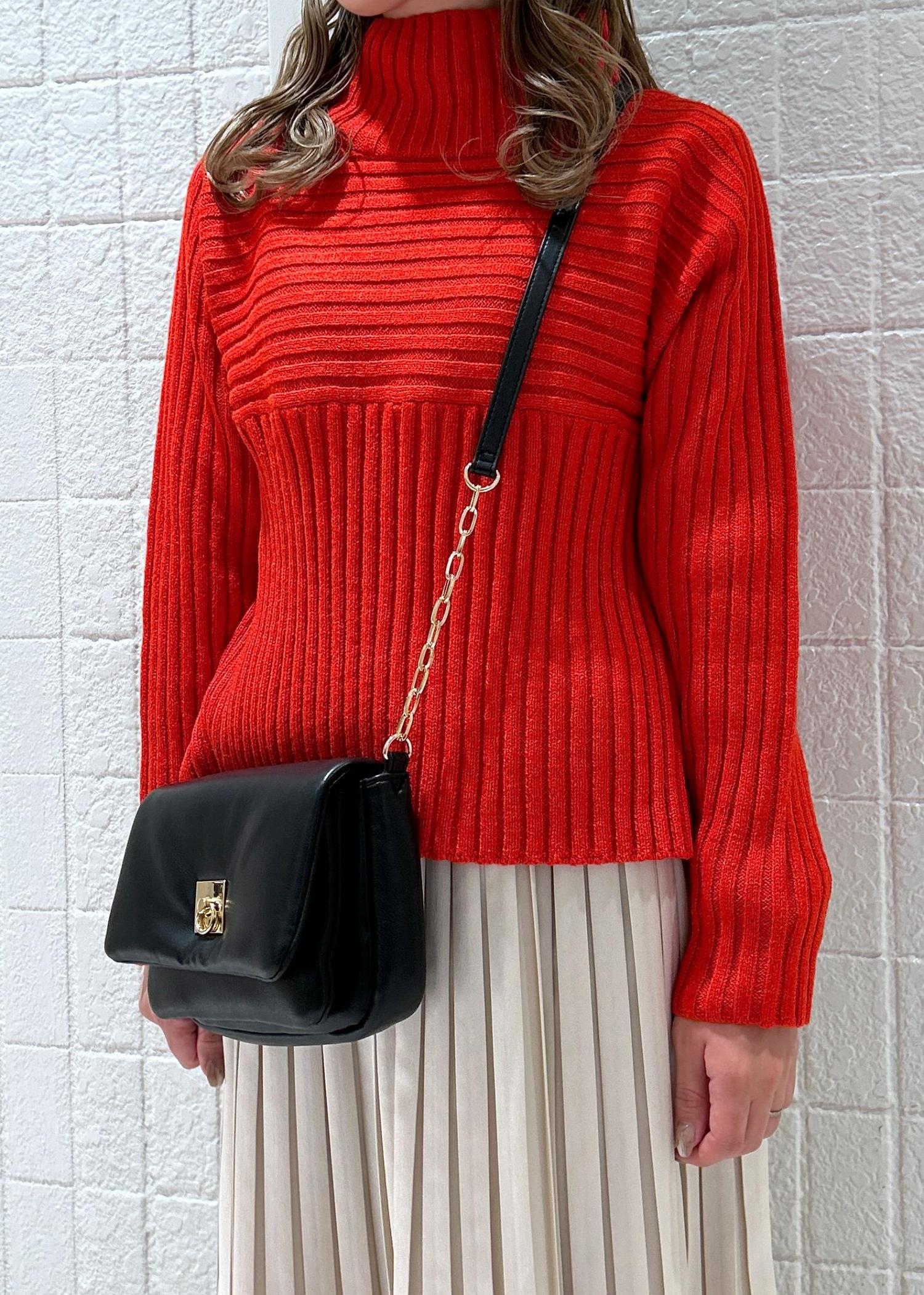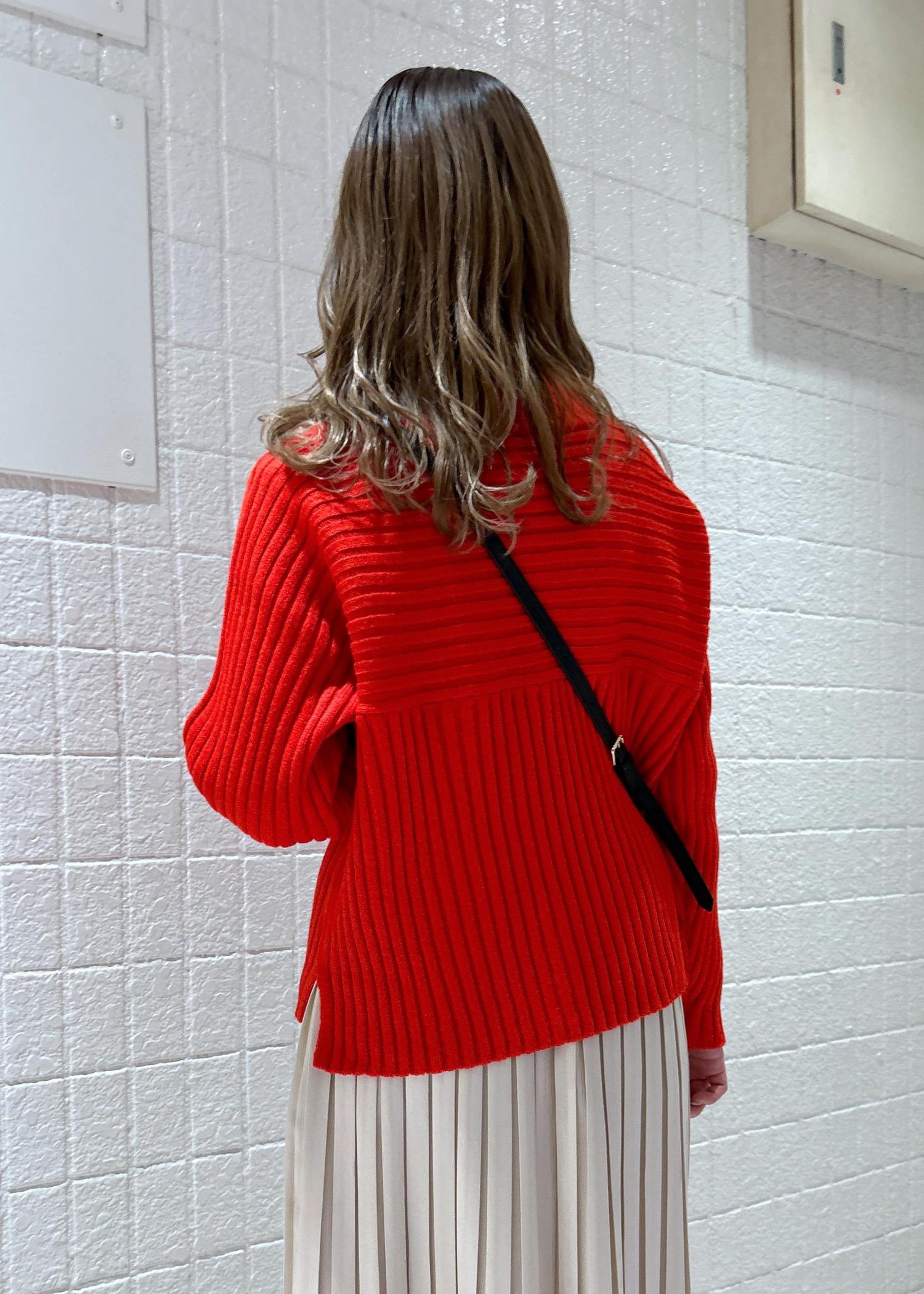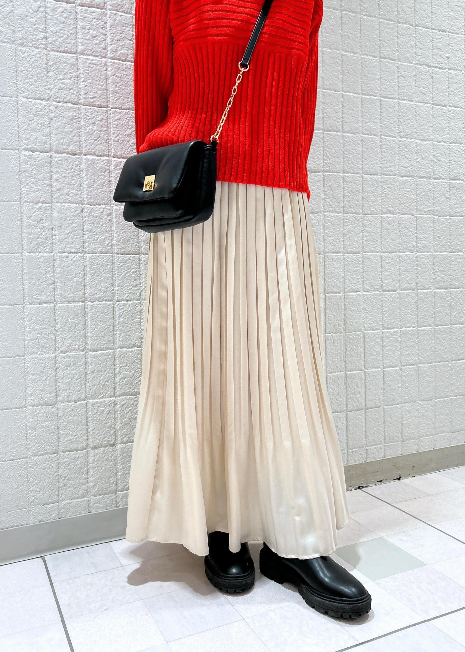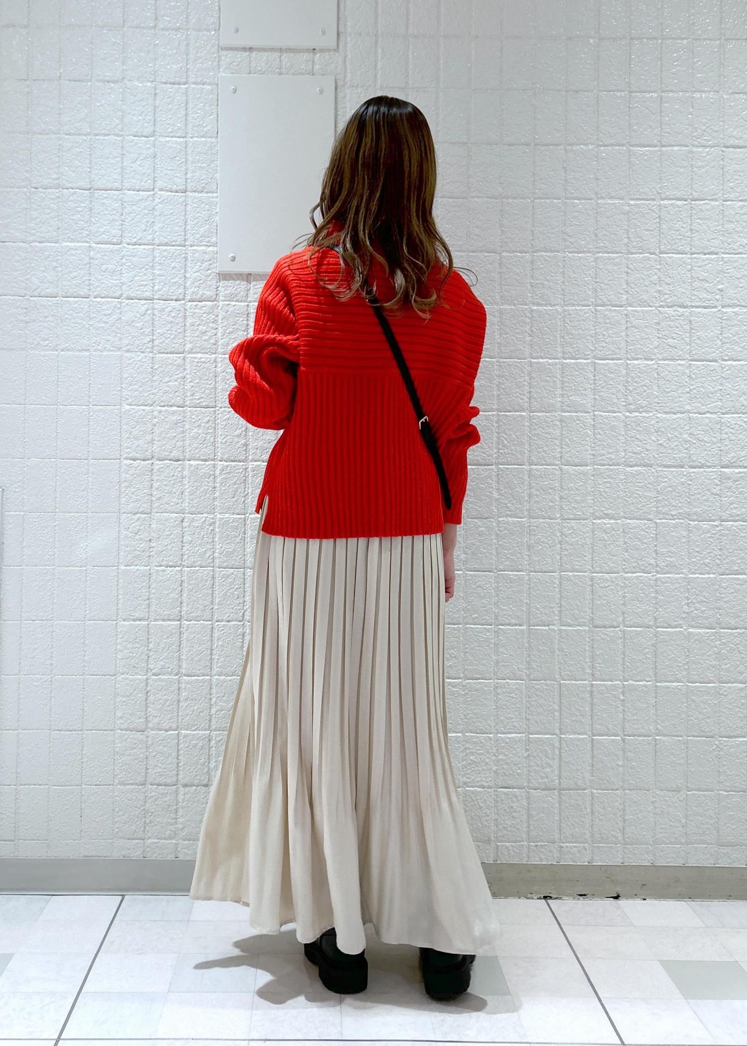 大人気リブ切り替えニットのレッドを使ったクリスマスコーデ。