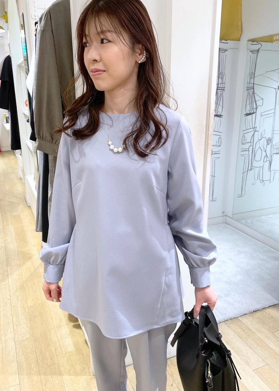 ブラウスのバッグデザインがペプラムシルエットになっていて、とっても華やか!